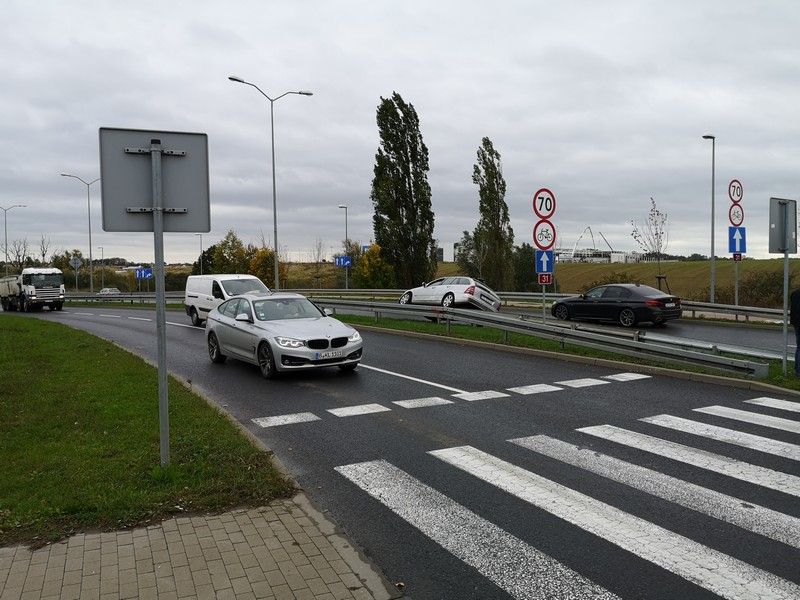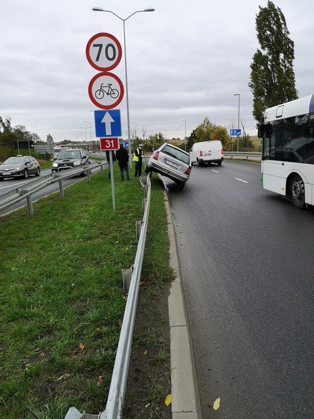 W piątek (11 października) przed godz. 14 kierowca mercedesa na szczecińskiej rejestracji zjeżdżając z ronda Hakena -w stronę Podjuch - nie wyrobił na zakręcie i wjechał na barierki ochronne. Przejechał po nich kilkanaście metrów i zawisł. Nikomu nic się nie stało, ale koszt naprawy będzie dość wysoki.