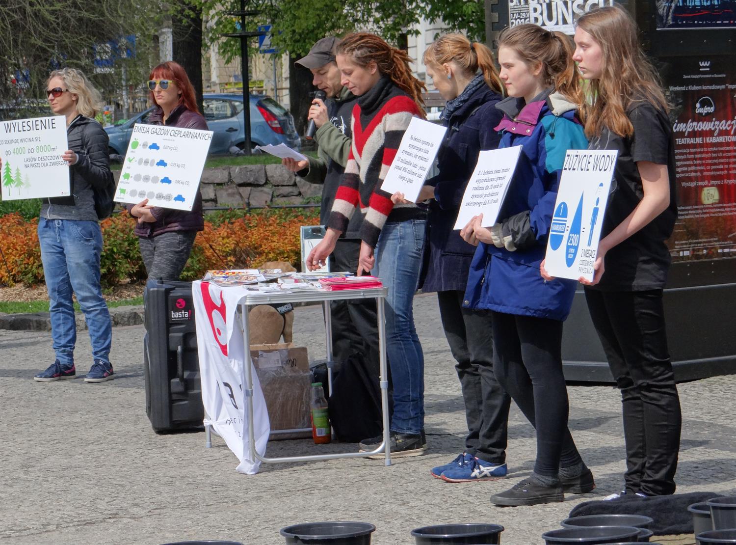 „Czy wiesz, że to co jesz ma większy wpływ na środowisko niż to czy segregujesz śmieci, wybierasz rower zamiast samochodu lub zakręcasz wodę podczas mycia zębów?" - pytają aktywiści BASTA! i podpowiadają: zmień nawyki żywieniowe, przejdź na wegetarianizm lub weganizm. W sobotę (23 bm.) na pl. Grunwaldzkim zorganizowali happening ph. „Jak mięso zabija Ziemię".
