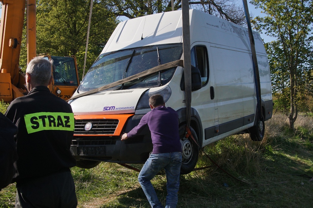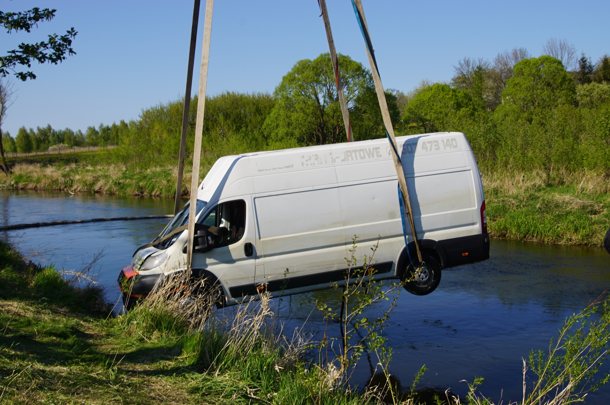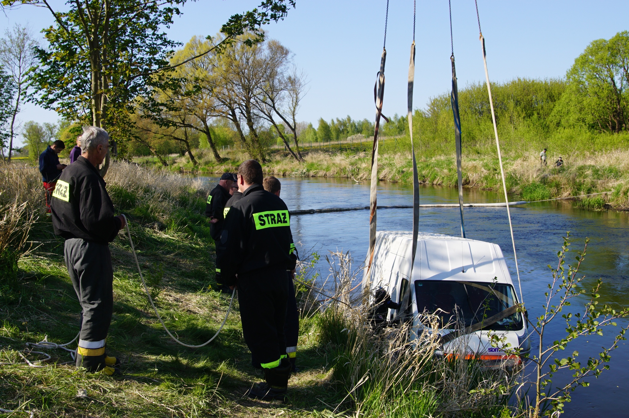 Kilka minut przez północą w nocy z czwartku na piątek dyżurni policji i straży zostali powiadomieni o zdarzeniu. Noc było bardzo mglista. Strażacy zabezpieczyli auto, spinając je linami i przywiązując do pobliskiego drzewa, by nie porwał je nurt. – Ze wstępnych ustaleń wynika, że prowadząca pojazd marki Fiat Ducato nie włączyła hamulca ręcznego w samochodzie. Auto stoczyło się do Regi – tłumaczy Zbigniew Frąckiewicz, oficer prasowy Komendy Powiatowej Policji w Gryficach.