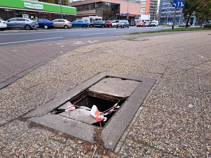 Pokrywę studzienki uszkodziły samochody bardzo często wjeżdżające pod przedszkole.