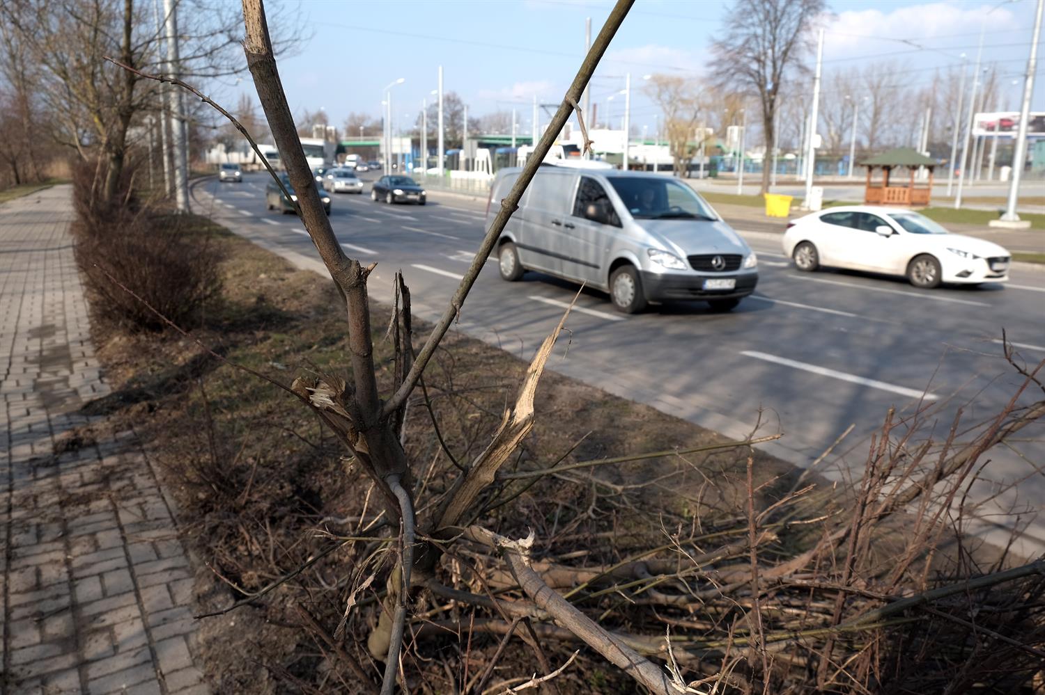 Na zdj.:Pobocze ul. Gdańskiej przy Basenie Górniczym jest rozorane wpadającymi na trawnik samochodami