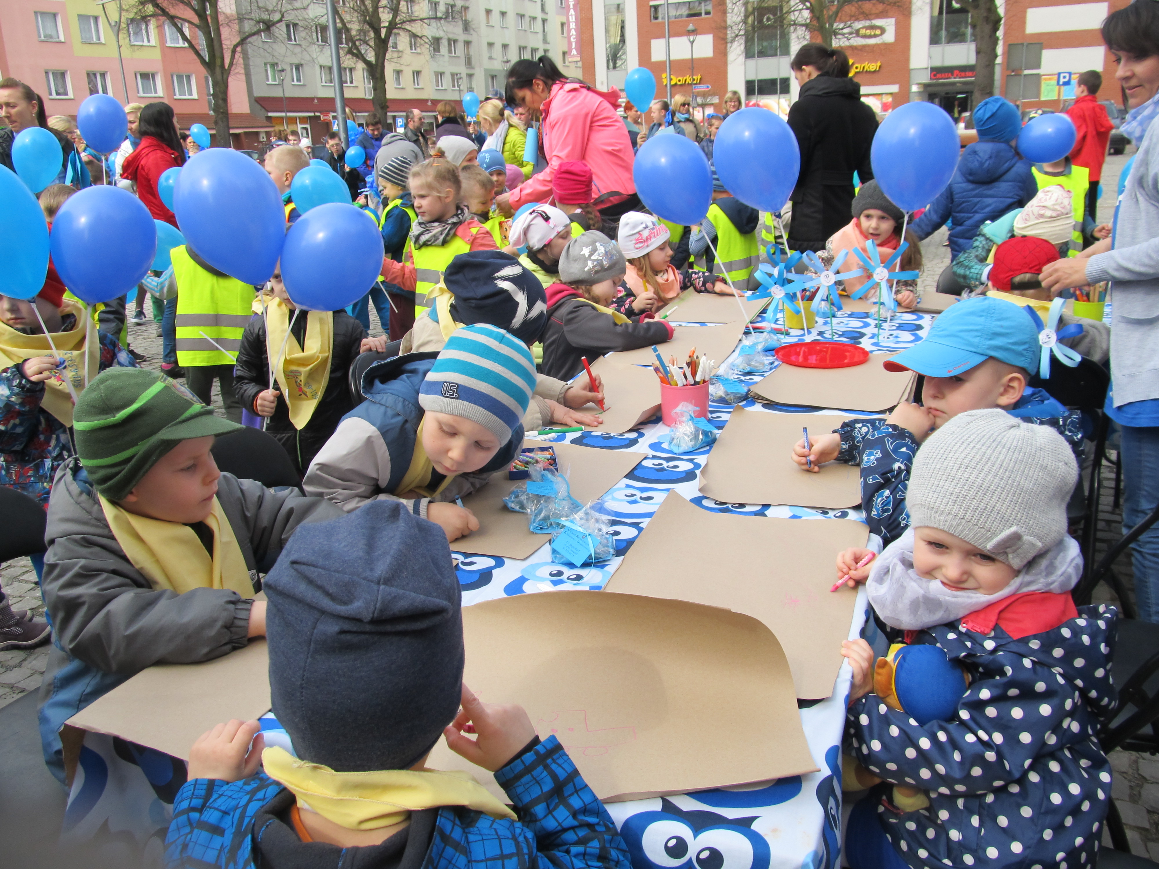 Kilkudziesięciu podopiecznych, ich opiekunów oraz wielu małych i dużych przyjaciół stargardzkiego Dziennego Ośrodka Rehabilitacyjno-Edukacyjno-Wychowawczego spotkało się wczoraj w południe na Rynku Staromiejskim, aby włączyć się w obchody Światowego Dnia Wiedzy na Temat Autyzmu, ustanowionego przez Zgromadzenie Ogólne ONZ w 2008 r. Wszyscy uczestnicy, aby wyrazić swą solidarność z autystami, byli ubrani na niebiesko albo trzymali w rękach niebieskie balony lub wiatraczki.