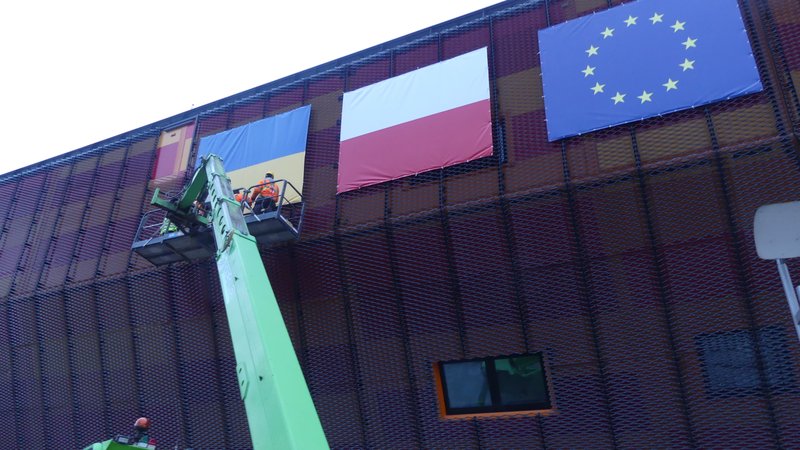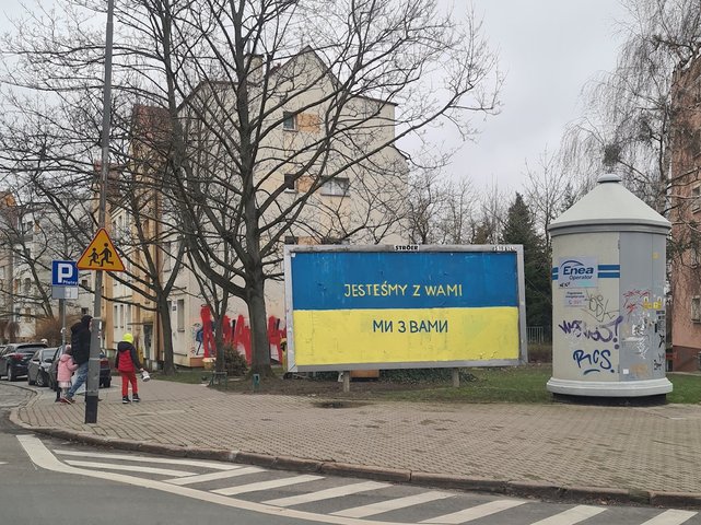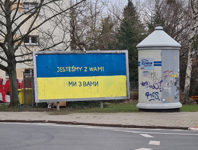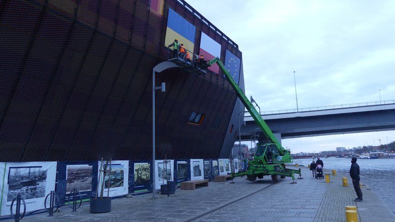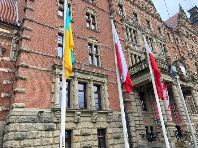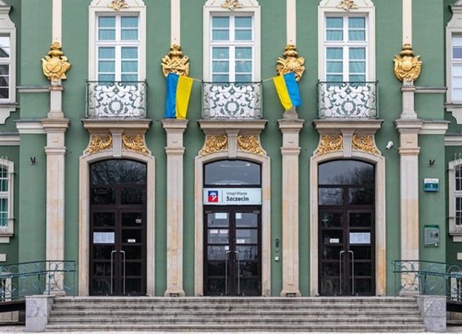 Można je zobaczyć m.in. na gmachu Urzędu Miasta, Zachodniopomorskiego Urzędu Wojewódzkiego, Morskiego Centrum Nauki czy ulicznych banerach. W oknach wywieszają je też mieszkańcy. Często towarzyszą im też hasła "JESTEŚMY Z WAMI" po polsku i ukraińsku. To gest wsparcia dla ukraińskiego narodu, który zmaga się z rosyjską inwazją.
