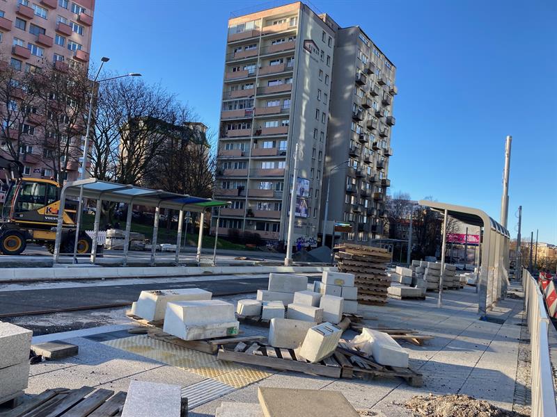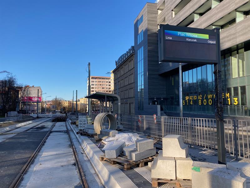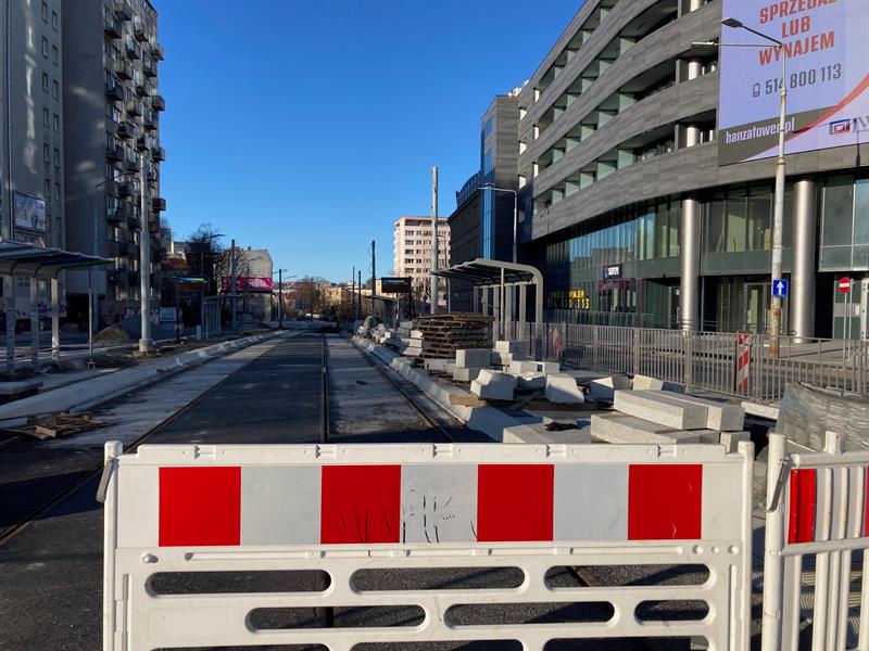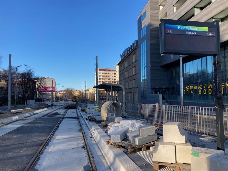 Prace miały zakończyć się do 1 grudnia ub. roku. Jednak gotowa jest tylko część torowiska i infrastruktury. Na różnym etapie jest też budowa przystanków - w tym nowego, na wysokości Hansa Tower, który po uruchomieniu komunikacji w tym miejscu będzie nosił nazwę "Plac Witosa".