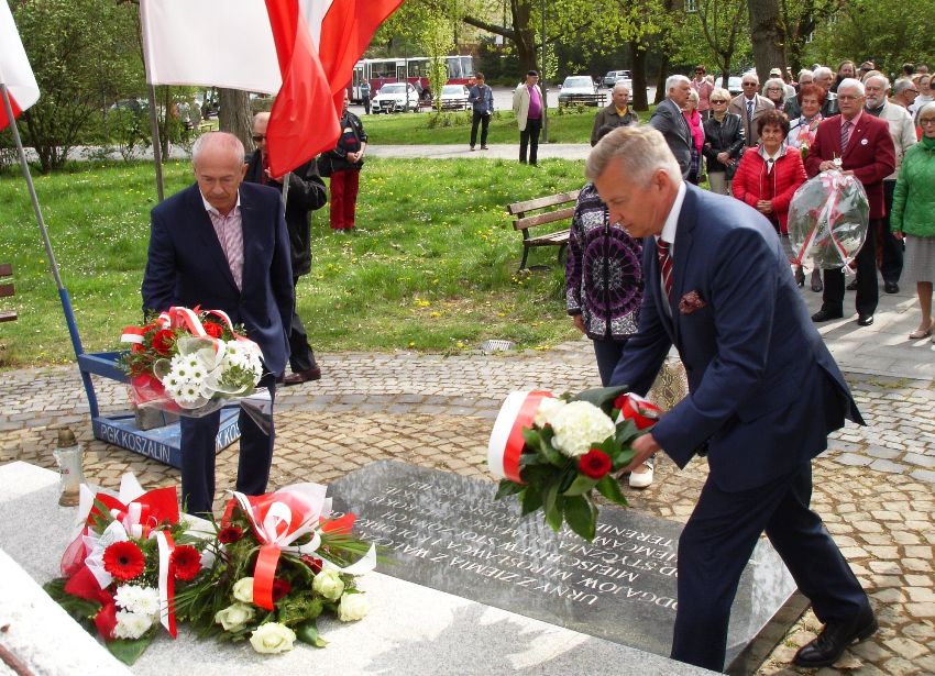 Na zdjęciu: Pod pomnikiem Byliśmy – Jesteśmy – Będziemy kwiaty w imieniu SLD złożyli: radny sejmiku wojewódzkiego Stanisław Wziątek (z prawej) i szef koszalińskiej partii Jerzy.