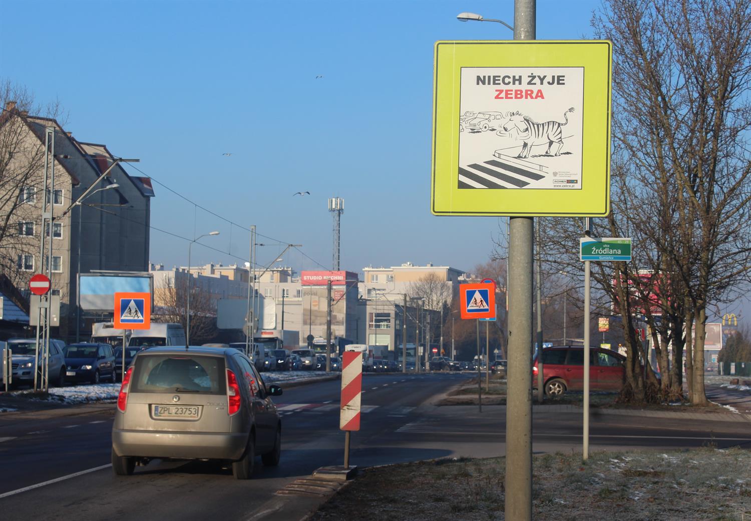 - W ramach poprawy bezpieczeństwa w ruchu drogowym lokalni radni zaproponowali udział w programie "Niech żyje zebra" - wyjaśnia Hanna Pieczyńska, rzecznik prasowy miasta ds. dróg i transportu miejskiego w Szczecinie. - Zakłada on ustawienie dodatkowych tablic.