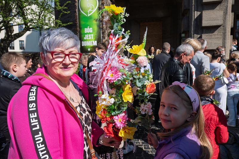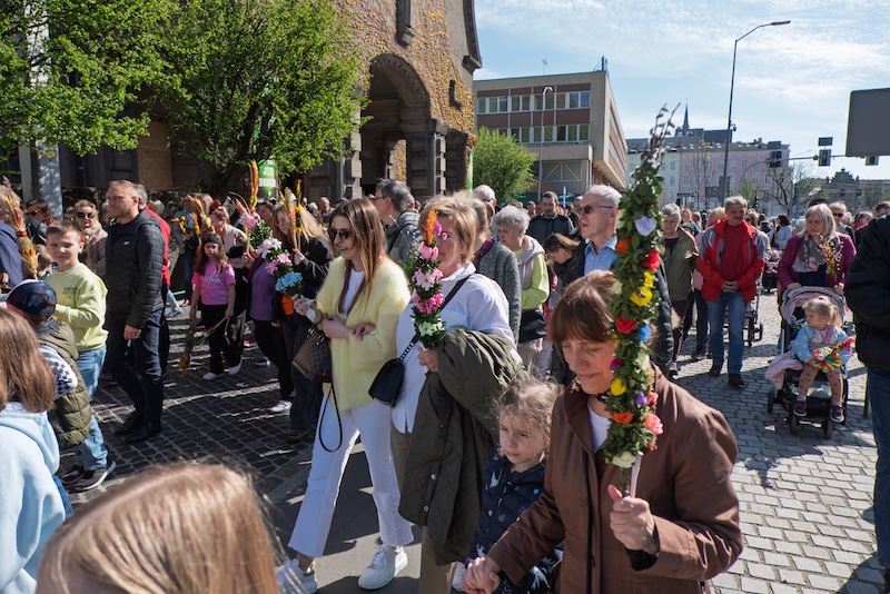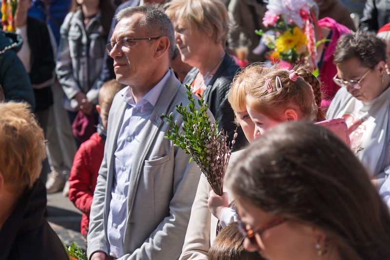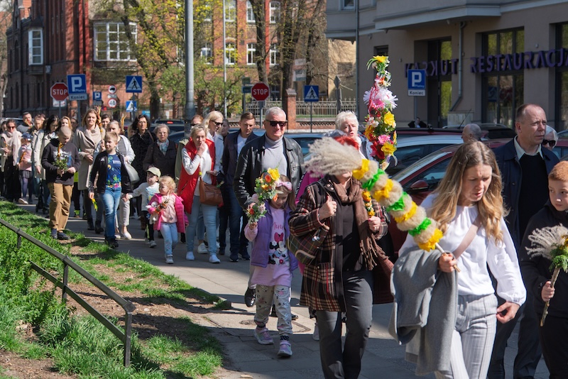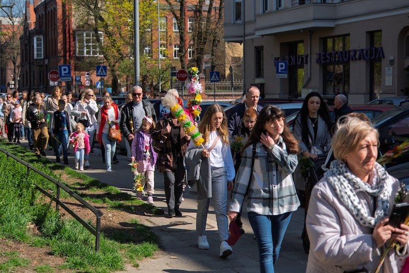Jeszcze przed rozpoczęciem liturgii przed kościołem ustawiły się handlarki z palmami. Osoby, które nie zdążyły wykonać własnych, mogły zakupić ręcznie robione wyroby. Kolorowe palmy, ozdobione suszonymi kwiatami, baziami i wstążkami, przypominały o pięknej polskiej tradycji, która wciąż trwa – mimo zmieniających się czasów.