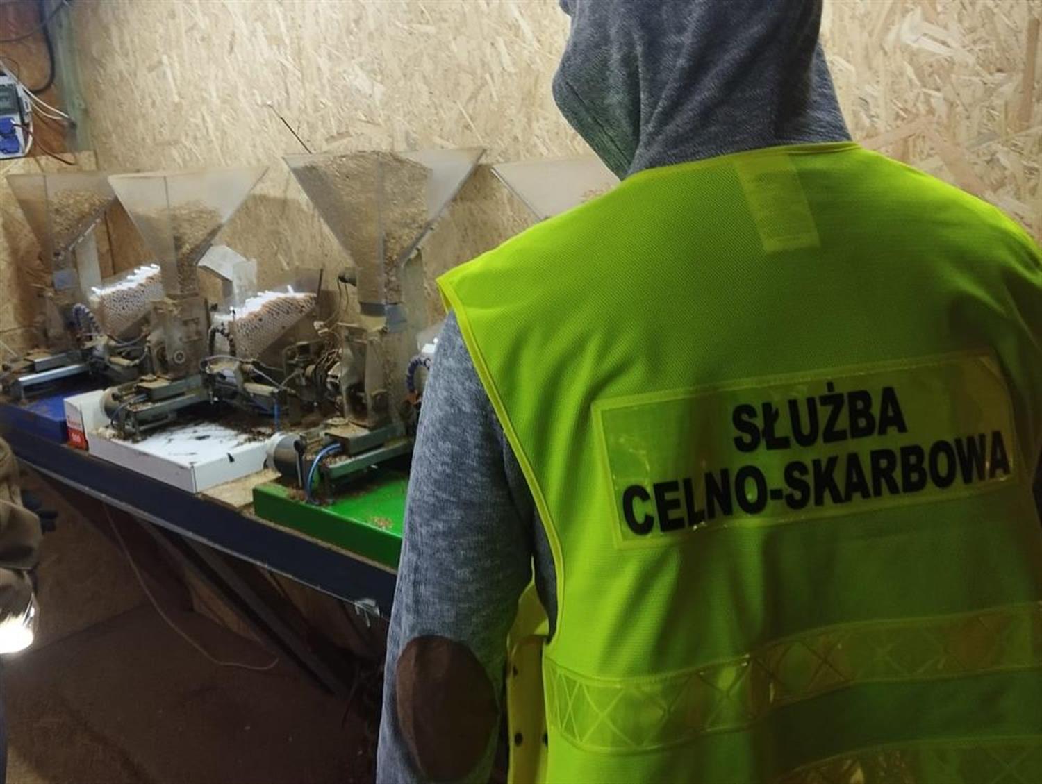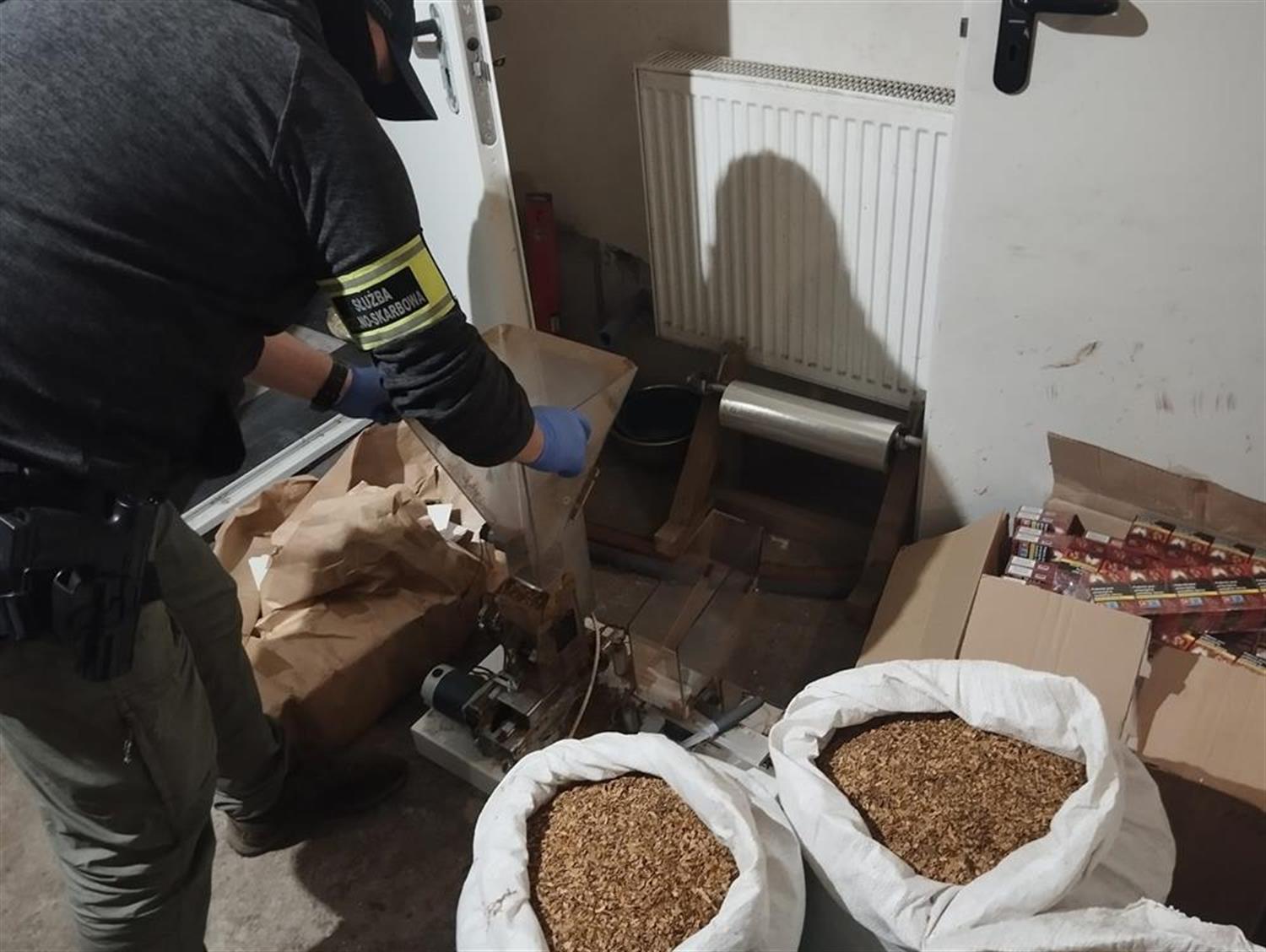 Funkcjonariusze KAS z Zachodniopomorskiego Urzędu Celno-Skarbowego w Szczecinie skontrolowali kilka posesji na terenie powiatu goleniowskiego. W jednej z hal znajdowała się zaimprowizowana wytwórnia z 13 maszynami do produkcji papierosów. W pomieszczeniach ujawniono również ponad 400 tysięcy papierosów bez polskich znaków akcyzy, gotowych do dystrybucji i 1,9 tony tytoniu do dalszej produkcji. Zabezpieczono ponadto gotówkę w kwocie 6800 zł i komponenty (gilzy, opakowania) do produkcji ok. 1 mln papierosów.