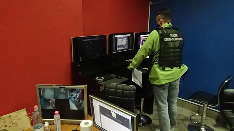 W zamkniętych salonach gier funkcjonariusze KAS zabezpieczyli komputery, klasyczne automaty do gier, monitoring oraz gotówkę. Fot. KAS