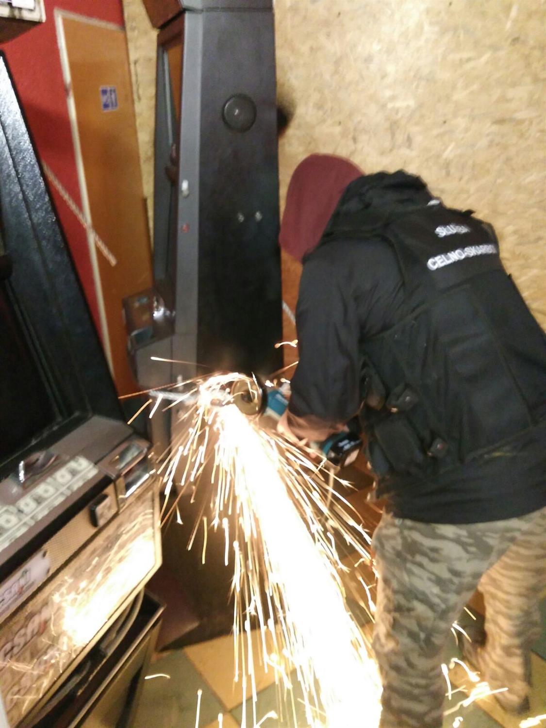 Funkcjonariusze Zachodniopomorskiego Urzędu Celno-Skarbowego przy współpracy z policjantami Wydziału do Walki z Korupcją i Przestępczością Gospodarczą KMP w Koszalinie zajęli w Rosnowie dwa nielegalne automaty do gier. Jak nas powiadomiła Małgorzata Brzoza, rzecznik prasowy Izby Administracji Skarbowej w Szczecinie, konieczne było siłowe rozdzielenie urządzeń, które spięte były stalowymi linami.