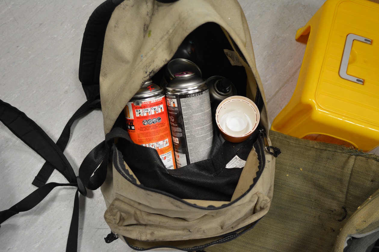 Funkcjonariusze SOK patrolując teren przyległy do dworca kolejowego w Stargardzie dostrzegli osoby wykonujące nielegalne graffiti na zaparkowanych na bocznicy pociągach. Ich interwencja skończyła się złapaniemdwóch sprawców tego przestępstwa i przekazaniu ich stargardzkiej policji. Szybko ustalono, że jest to 38-letni obywatel Niemiec oraz 29-letni obywatel Włoch. W miejscu zniszczenia mienia oraz na drodze ucieczki w Parku 3 Maja zabezpieczono również torby z puszkami.