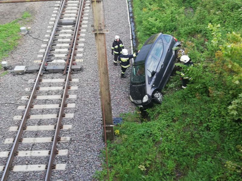 Okoliczności zdarzenia, do którego doszło w piątek (17 maja) późnym popołudniem, wyjaśniała policja. Ze wstępnych ustaleń wynika, że auto wpadło w poślizg i zjechało z wiaduktu wprost w bliskie sąsiedztwo przejazdu kolejowego. Na miejscu musieli interweniować strażacy. ©℗