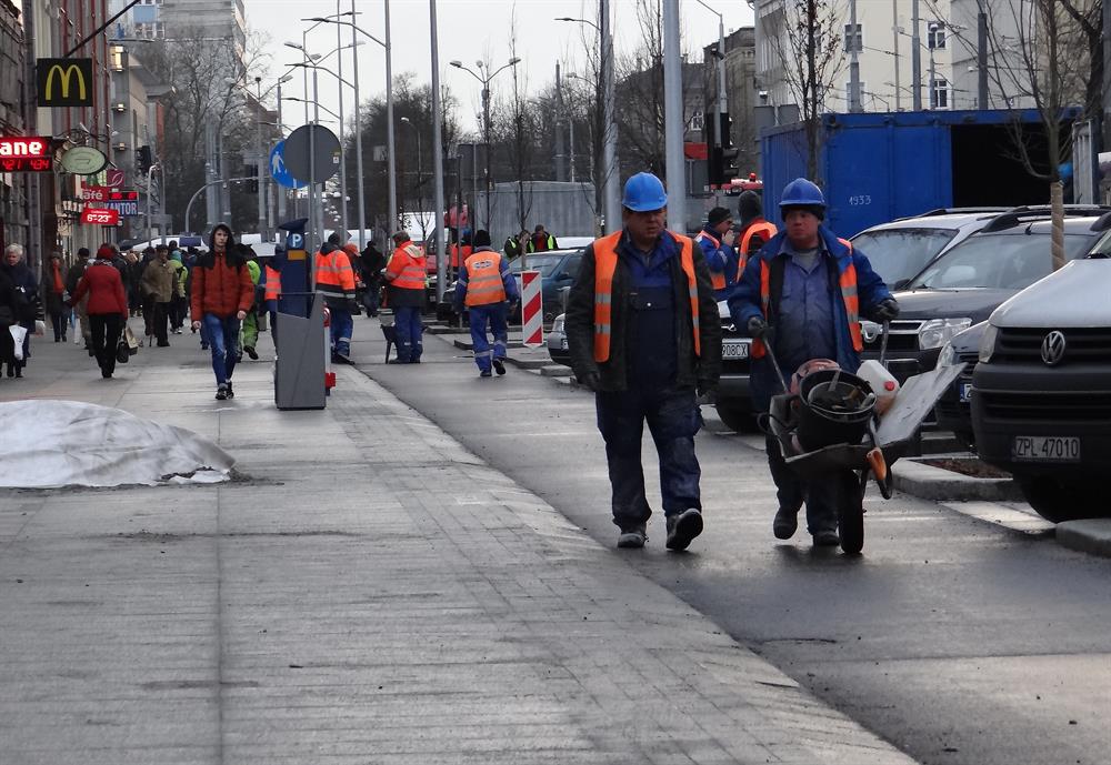 Aleja Niepodległości w Szczecinie to wciąż plac budowy. Czeka na odbiór i oficjalne oddanie do użytku po przebudowie pełnej niepodzianek i poślizgów. I nie zanosi się na to, by robotnicy Energopolu Szczecin S.A. generalnego wykonawcy inwestycji na zlecenie ZDiTM, mieli zniknąć z jej krajobrazu w najbliższych dniach na dobre. O czym świadczą chociażby zwiezione w kilka miejsc i zalegające od piątku przez dwa dni minionego weekendu hałdy cementowo-piaskowej podsypki na nowych płytach chodnika.