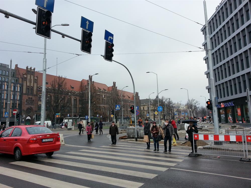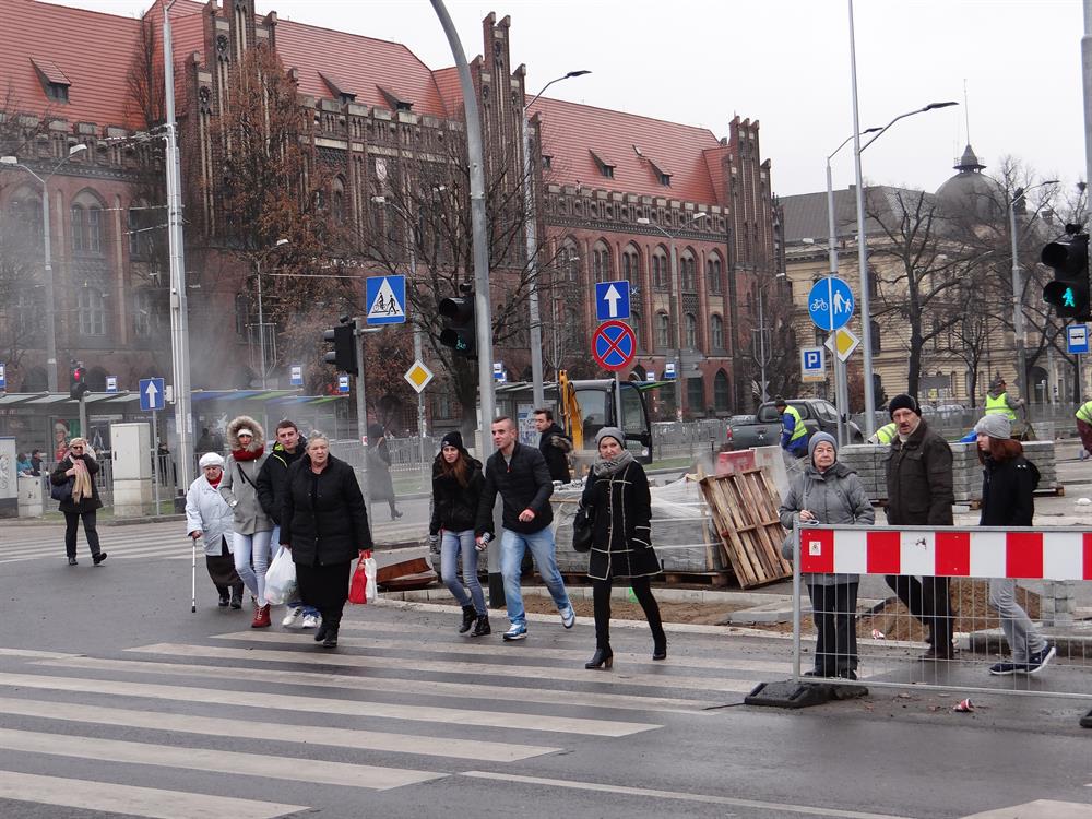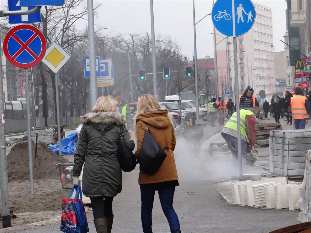 Czwartek (26.11.2015), czyli przed zapowiadanym otwarciem popołudniowym jezdni dla ruchu samochodów, obrazki z placu przebudowy w al. Niepodległości.