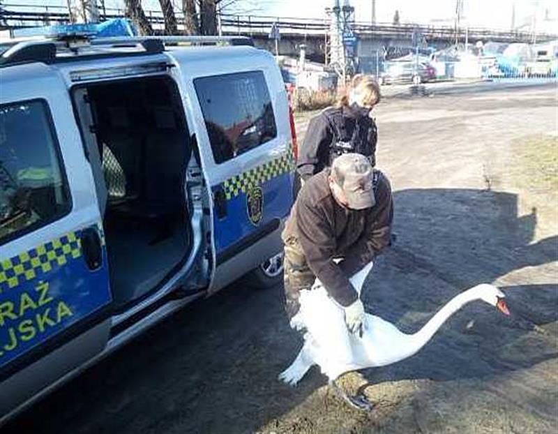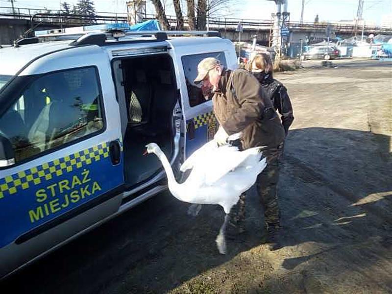 Ledwie poszedł na spacer, a już zgarnęły go miejskie służby. "Zapewne poczuł przedsmak nadchodzącej wiosny, ale... Takiego pasażera w radiowozie strażnicy miejscy jeszcze nie mieli" - przyznaje st. insp. Joanna Wojtach, opowiadając o akcji "łabędź".
