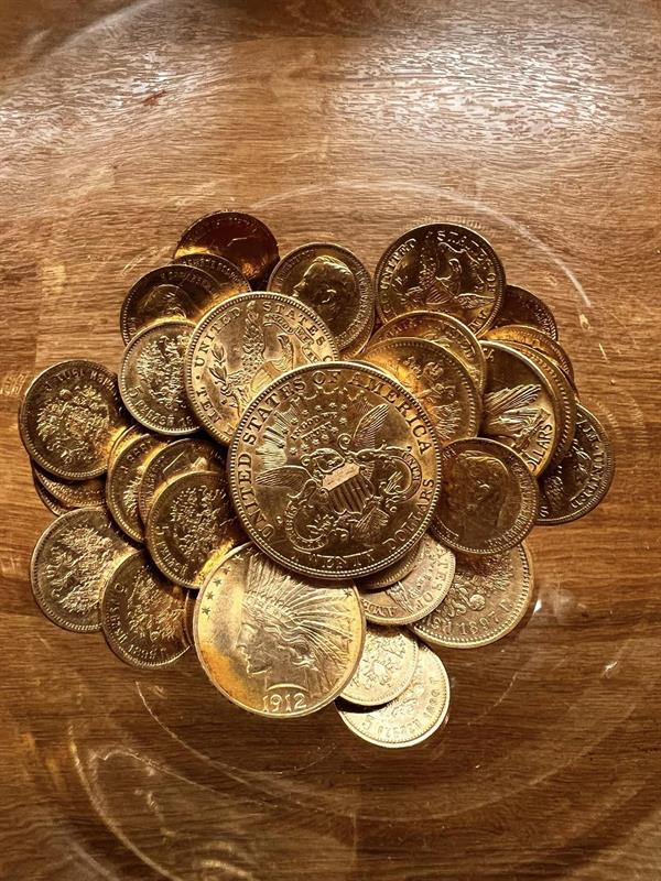 Po lewej stronie jest moneta z wizerunkiem Statui Wolności z rokiem 1926, która wygląda na inspirowaną "American Gold Eagle", lecz prawdziwe monety tego typu zostały wprowadzone do obiegu po raz pierwszy w 1986 roku.