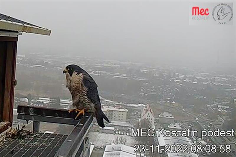 Na 80-metrowej wysokości kominie Miejskiej Energetyki Cieplnej w Koszalinie kilka lat temu zamontowano budkę lęgową dla sokołów wędrownych.