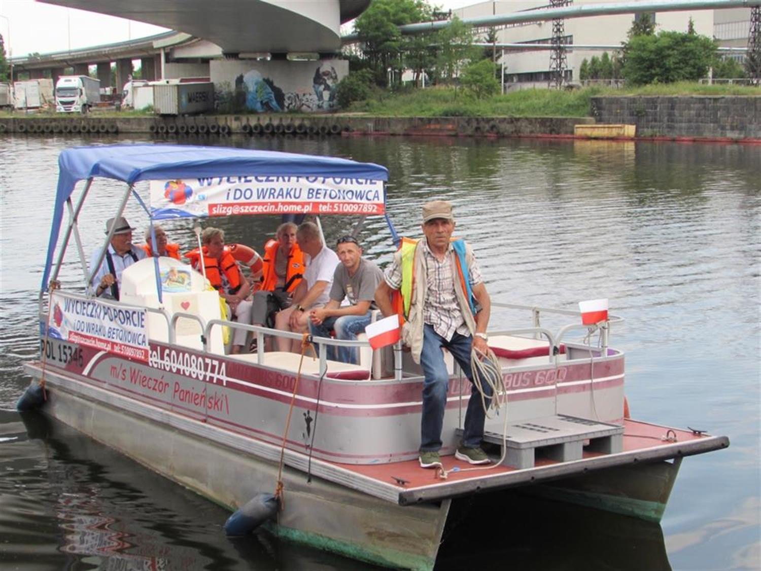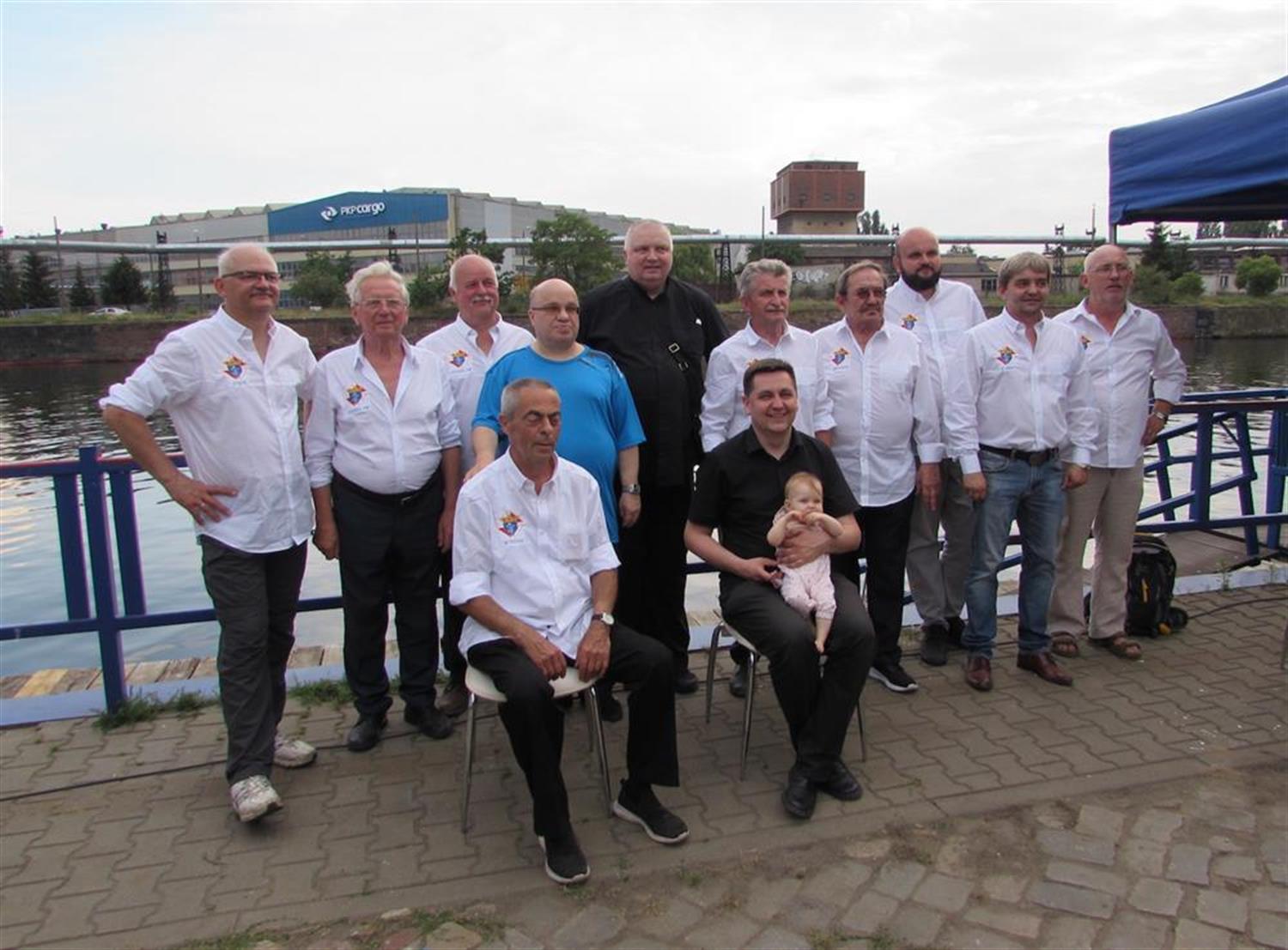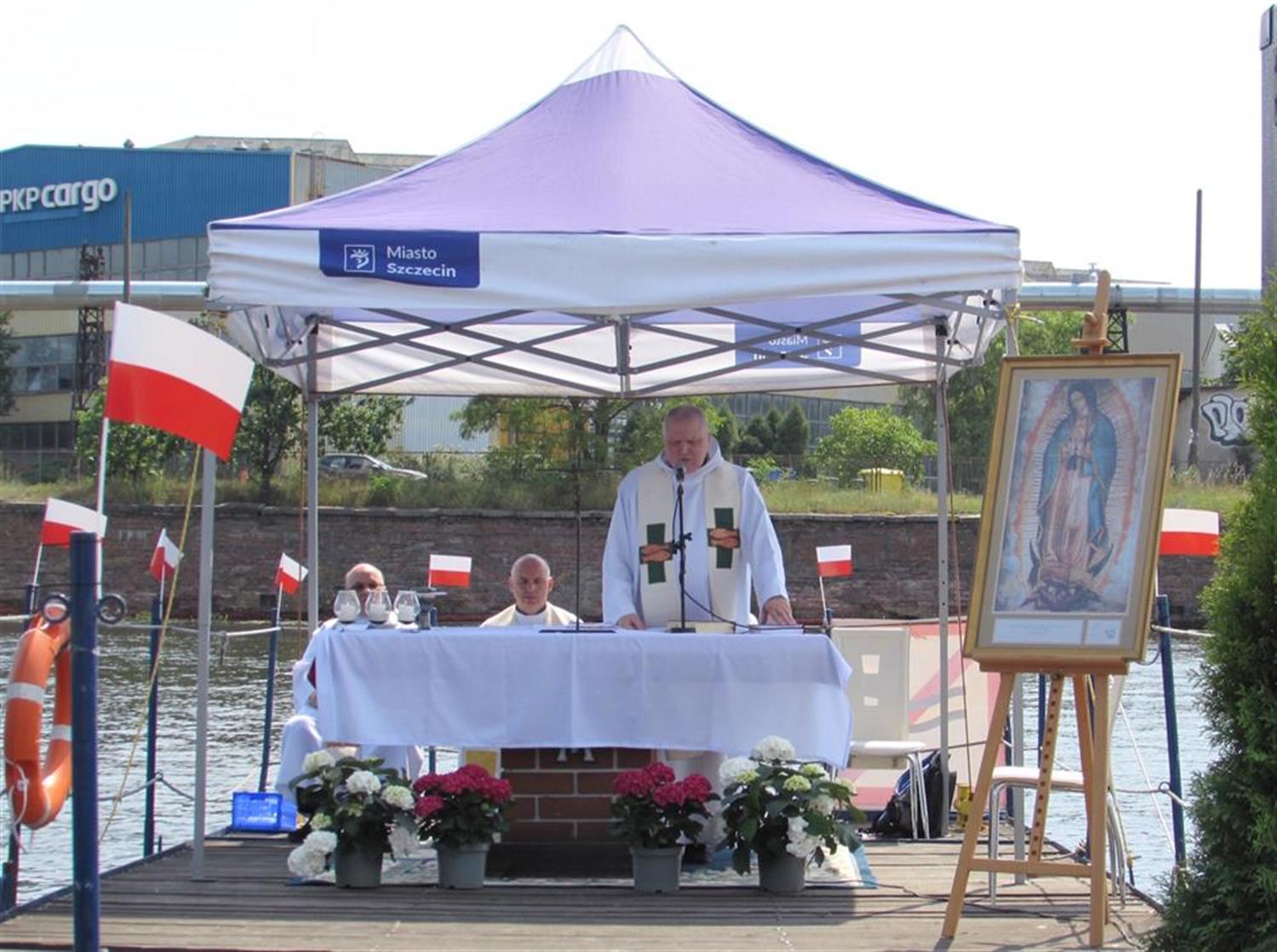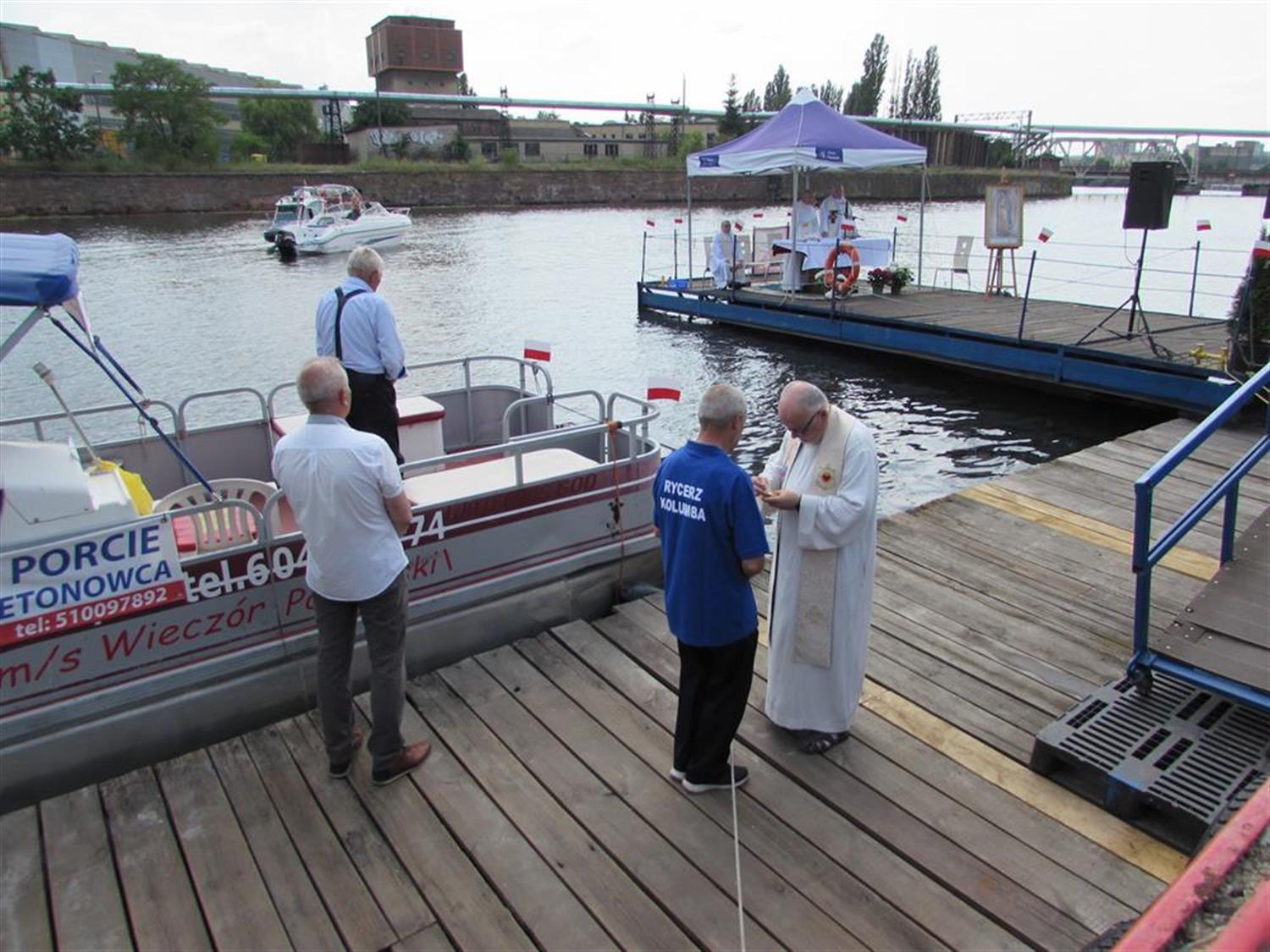 Najpierw na rzece została odprawiona msza św., którą koncelebrowali m.in. ks. prałat Dariusz Knapik, proboszcz parafii p.w. Św. Jakuba Apostoła w Szczecinie, duszpasterz Rycerzy Kolumba i ks. Stanisław Flis, proboszcz kościoła Morskiego p.w. Św. Jana Ewangelisty, duszpasterz ludzi morza.
