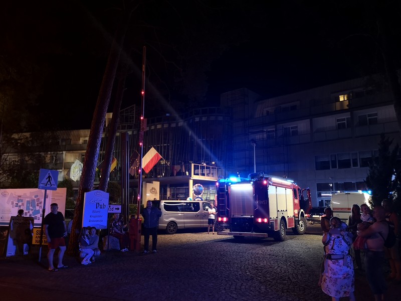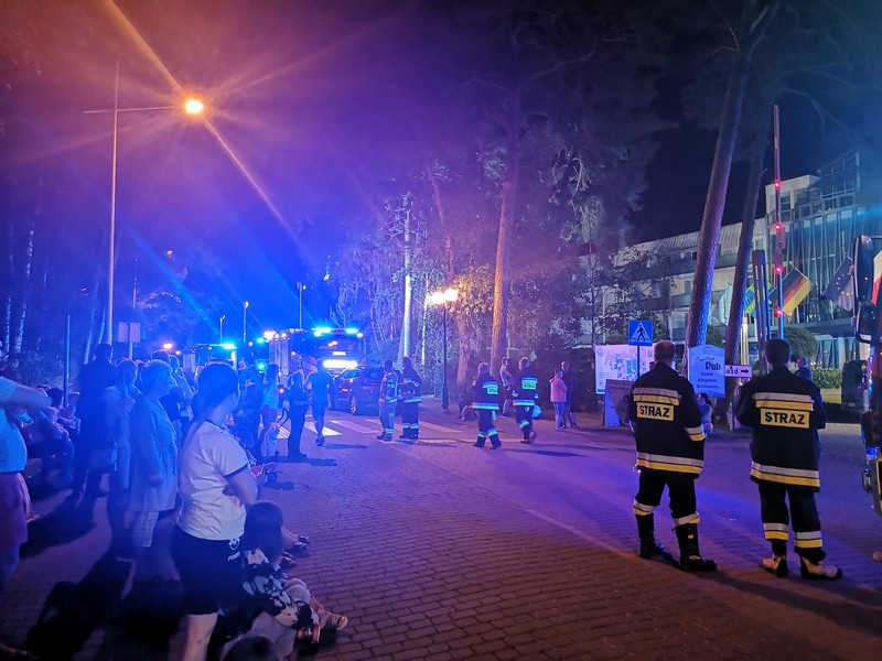 W środę (7 lipca) o północy wypoczywających w ośrodku Sandra w Pogorzelicy obudził alarm w pokojach. Zarządzono ewakuację wszystkich gości, którzy w spokoju i bez paniki wyszli na ulicę przed budynek. Na miejsce przyjechało 9 pojazdów straży pożarnej z Niechorza, Pobierowa, Karnic i Gryfic. Łącznie 40 strażaków.