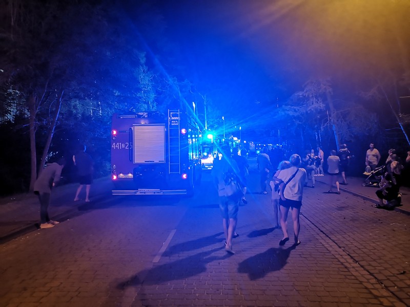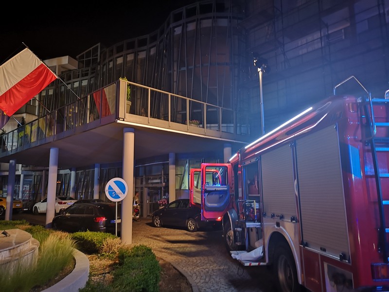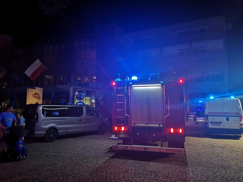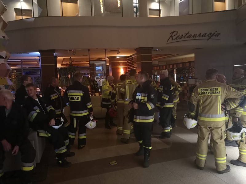No nie wiem kogo obudził alarm, bo u nas w pokoju nic nie było słychać, obudzili nas strażacy. Warto pomyśleć nad zastawioną autami drogą ewakuacji, panie burmistrzu, właścicielu trzeba zainwestować w większy parking. Dziękujemy strażakom, ratownikom i pani z wodą.
