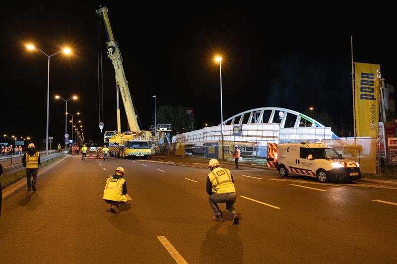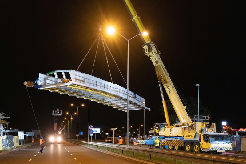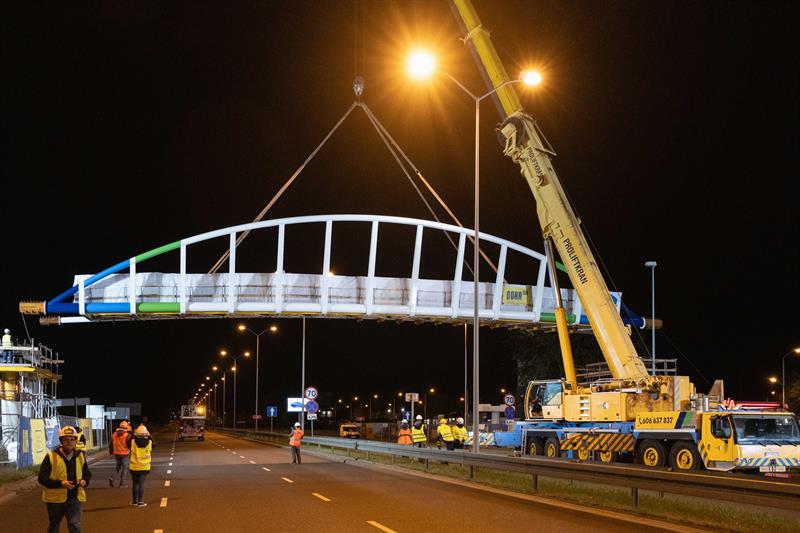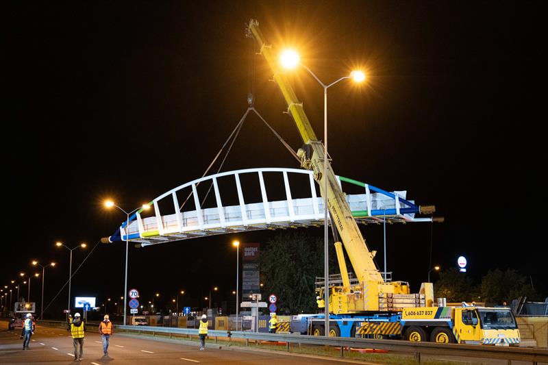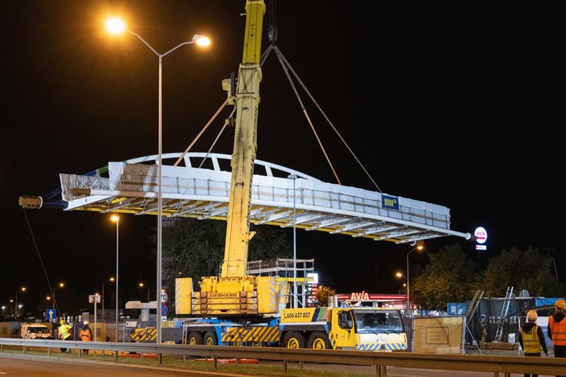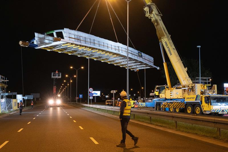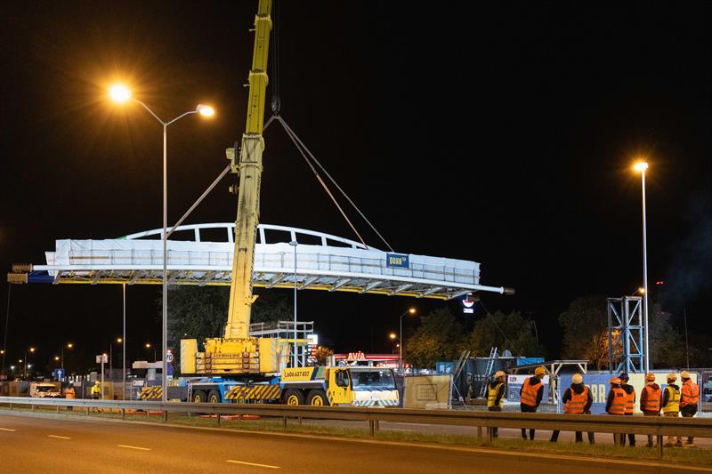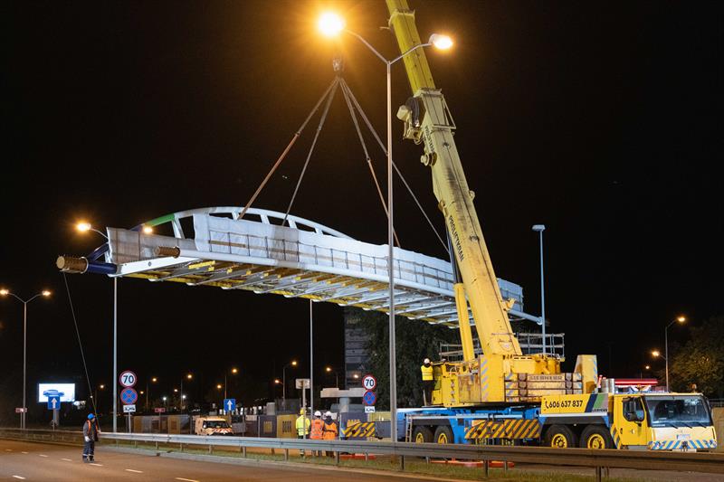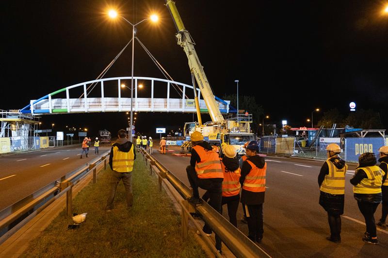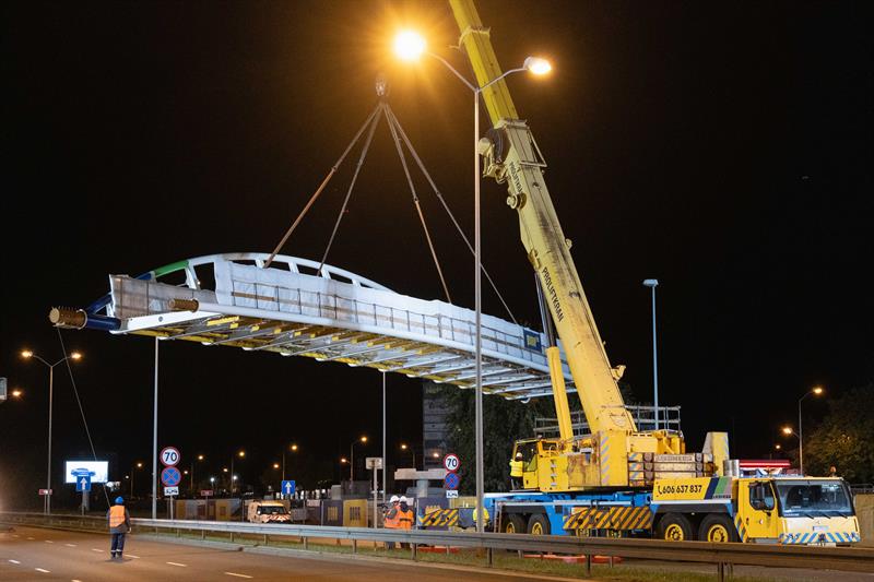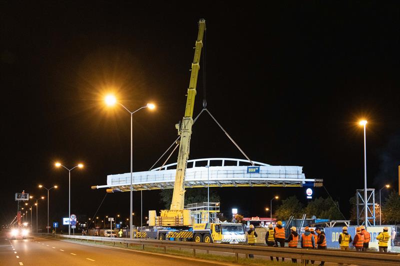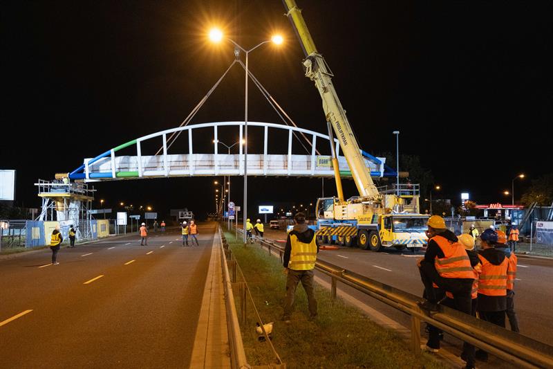 W nocy z piątku na sobotę (4/5 października) zakończył się montaż stalowej konstrukcji kładki pieszo-rowerowej nad ulicą Struga w Szczecinie. Operacja przebiegła zgodnie z planem, a nowa przeprawa jest już gotowa do dalszych prac.
