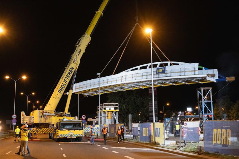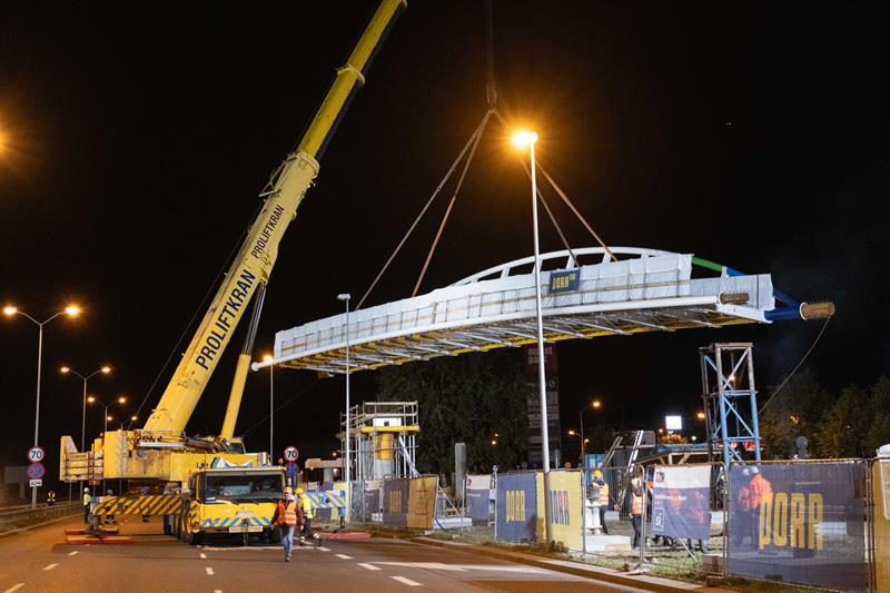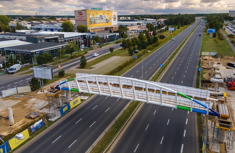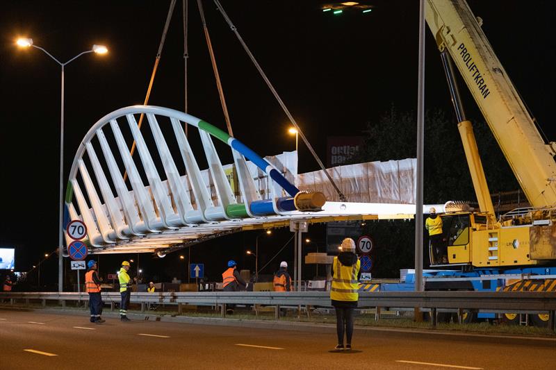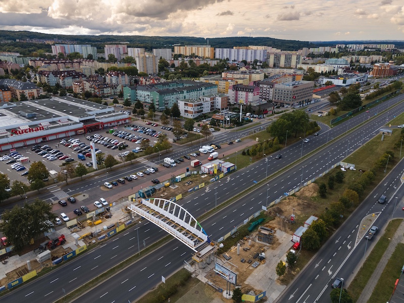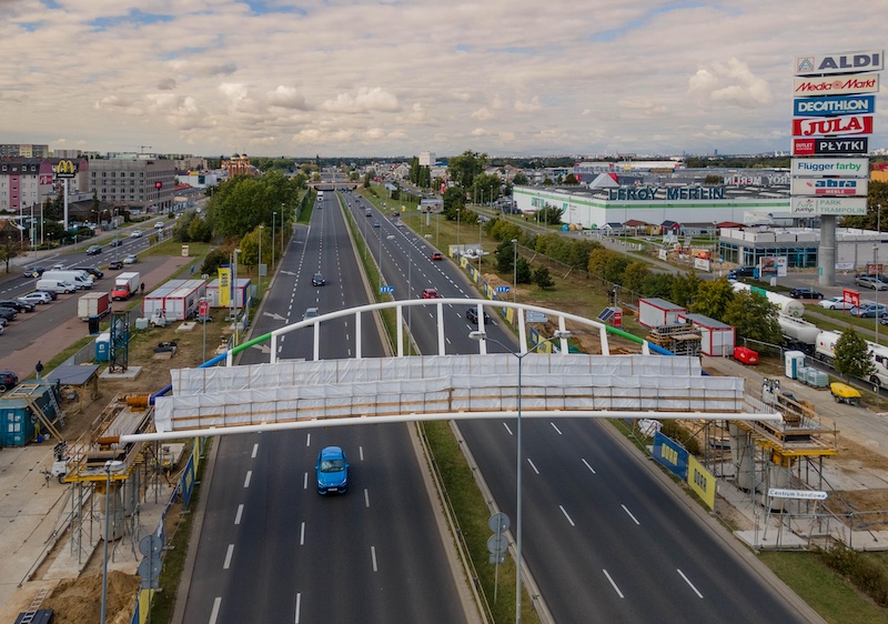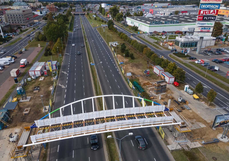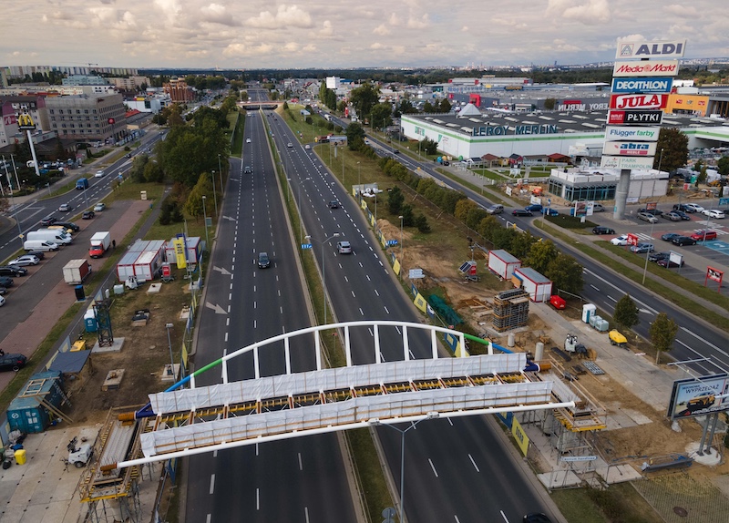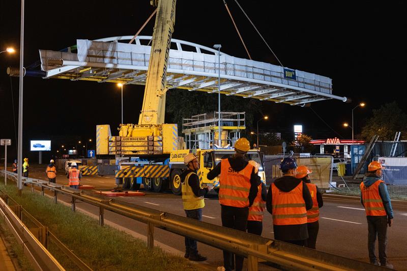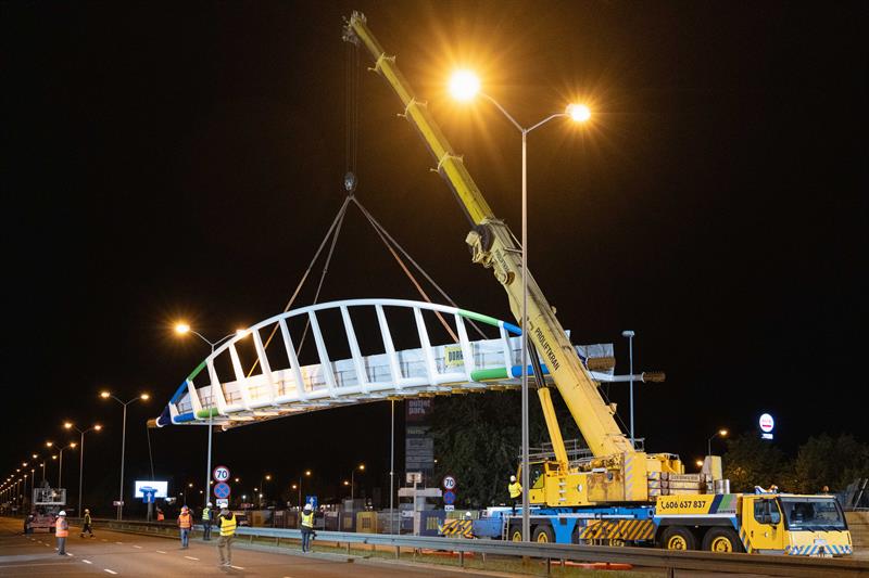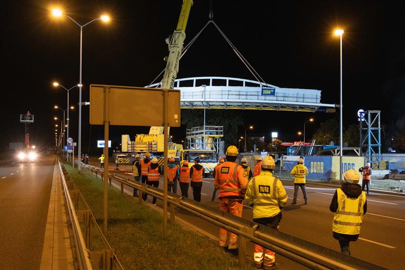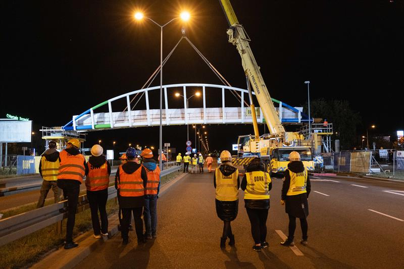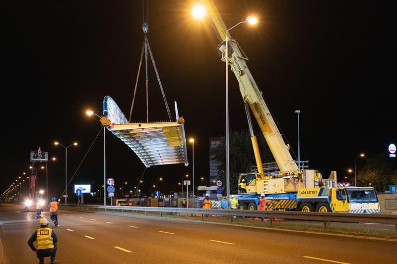 Chociaż montaż 30-tonowej konstrukcji stalowej to był kluczowy moment, to prace przy kładce jeszcze się nie skończyły. W najbliższych dniach planowane jest wykonanie płyty pomostu oraz montaż najazdów i schodów. Od 9 do 11 października w godz. 18-23 będą prowadzone prace przy montażu szalunków na płycie pomostu, przy dynamicznym zamykaniu jednego z pasów ruchu obu jezdni na wysokości nowej kładki.
