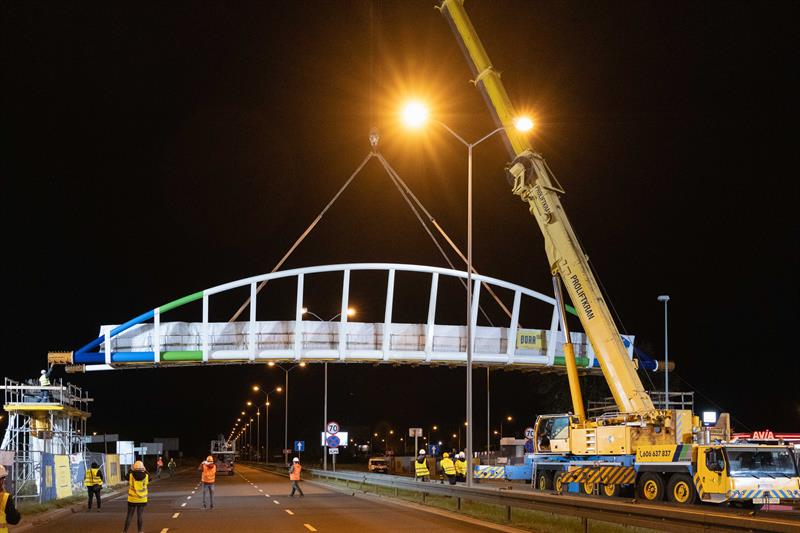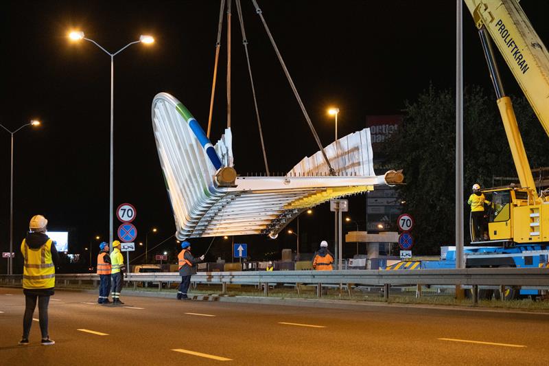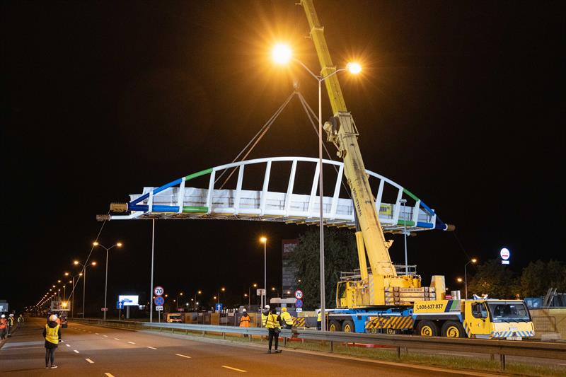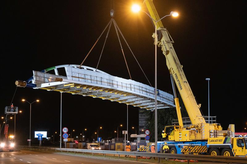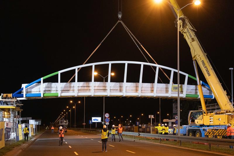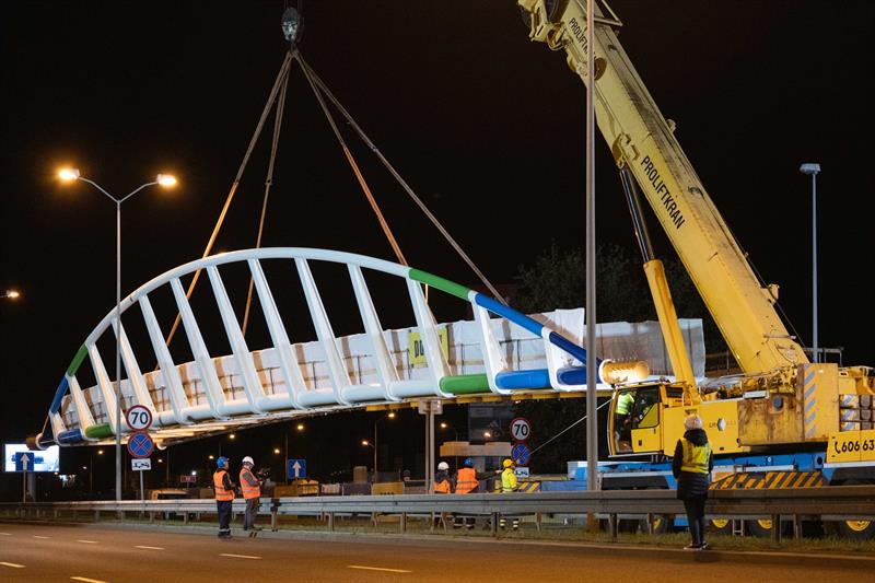 Nowa kładka ma 35 metrów długości. Jej montaż wymagał zamknięcia ulicy Struga w obu kierunkach, co spowodowało utrudnienia w ruchu drogowym. Zakończył się przed godz. 3.