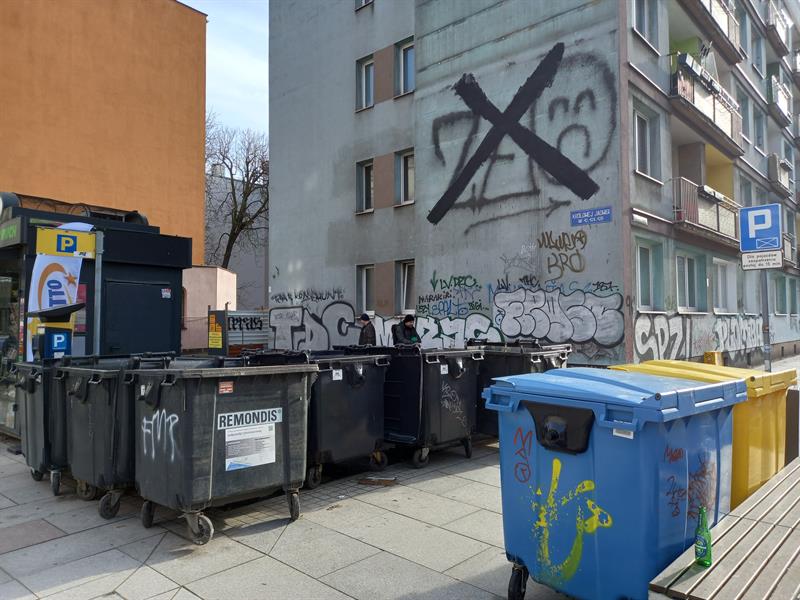 Niewielki plac u zbiegu ul. Królowej Jadwigi oraz Bohaterów Getta Warszawskiego. Świetnie by się nadawał np. na park kieszonkowy. Tym bardziej, że zaledwie przecznica dzieli to miejsce od śródmiejskiego odcinka al. Wojska Polskiego, który po przebudowie ma się stać – jak sugeruje magistrat – nowym zielonym salonem Szczecina. Tymczasem tym fragmentem Śródmieścia – jak widać – niepodzielnie zawładnęły kontenery (10 sztuk) na odpady. Przykro patrzeć, a co dopiero czuć, tak specyficzną jakość przestrzeni publicznej…
