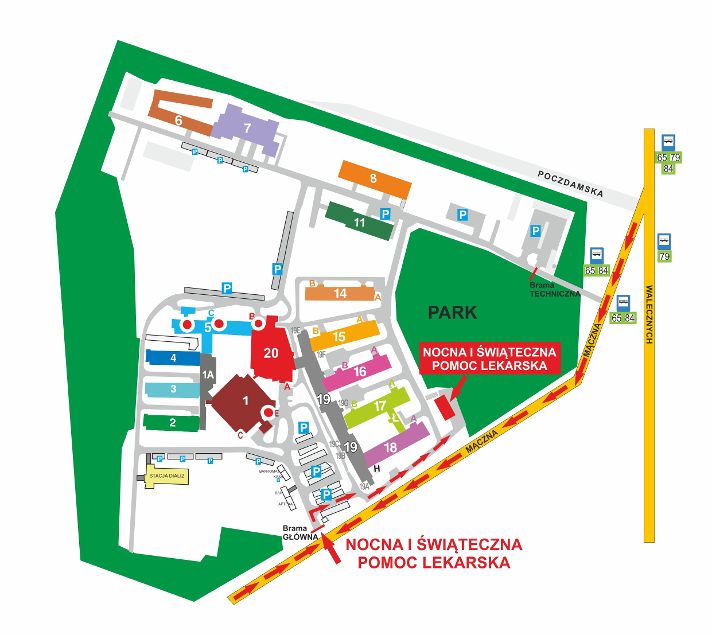 Poradnia, dotychczas funkcjonująca w pawilonie 14, przeniesiona została do pawilonu usytuowanego na tzw. dolnym parkingu przy pawilonie 18, od strony parku.Wejście i wjazd dla pacjentów przybywających własnymi pojazdami - główną bramą szpitala. Pacjenci korzystający z tych świadczeń nie ponoszą opłat parkingowych.
