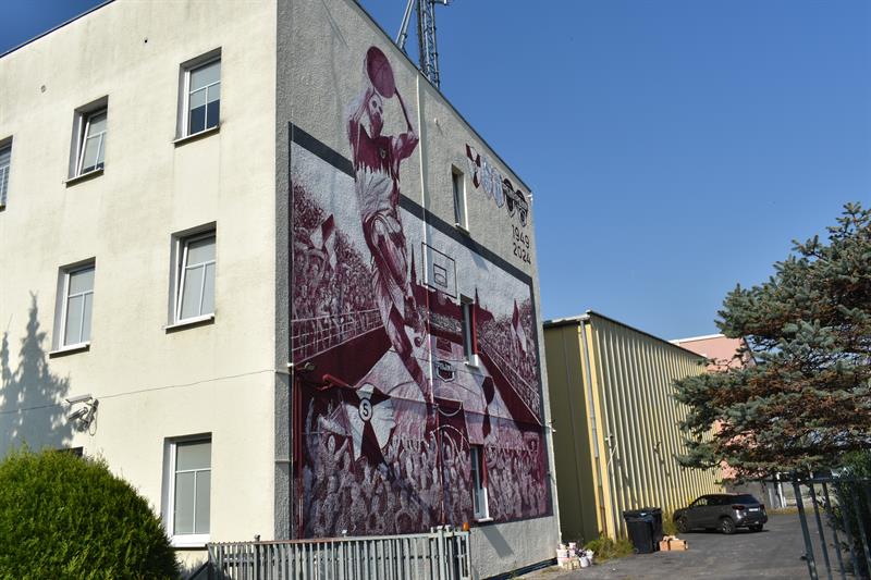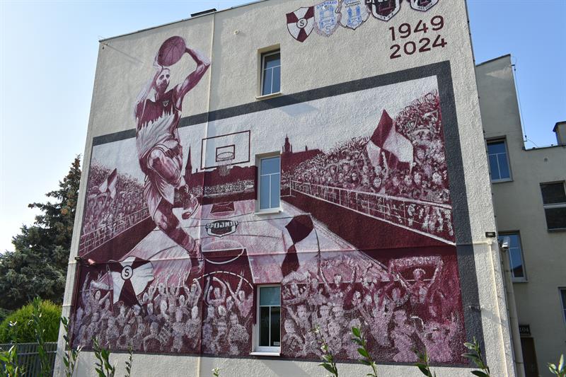 Mural w barwach biało-bordowych przedstawia koszykarza z piłką w akcji, są na nim także herby Spójni i kibice. Twórcą malowidła jest stargardzianin, który chce pozostać anonimowy.