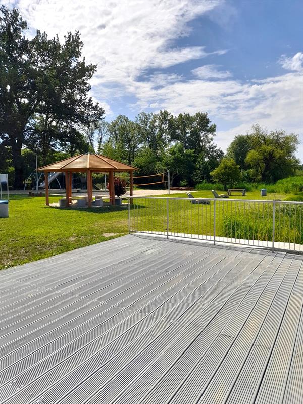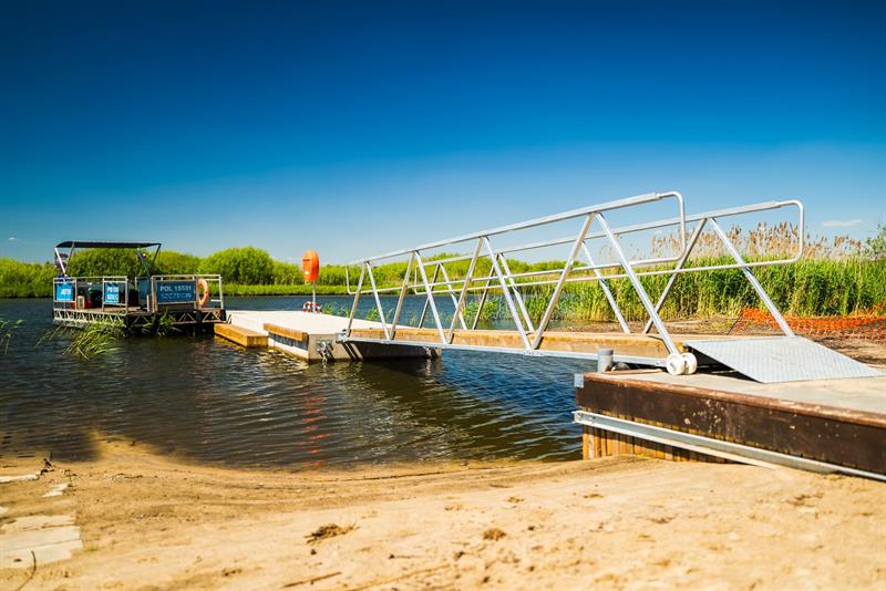 Na dawnym nabrzeżu do cumowania barek powstał taras widokowy z barierką, a tuż obok znajduje się pomost do cumowania kajaków i mniejszych łodzi. Zamontowano również tablice informacyjne z regulaminem korzystania z infrastruktury. Teren został dodatkowo obsadzony roślinnością – pojawiły się nowe krzewy i nawierzchnie trawiaste.