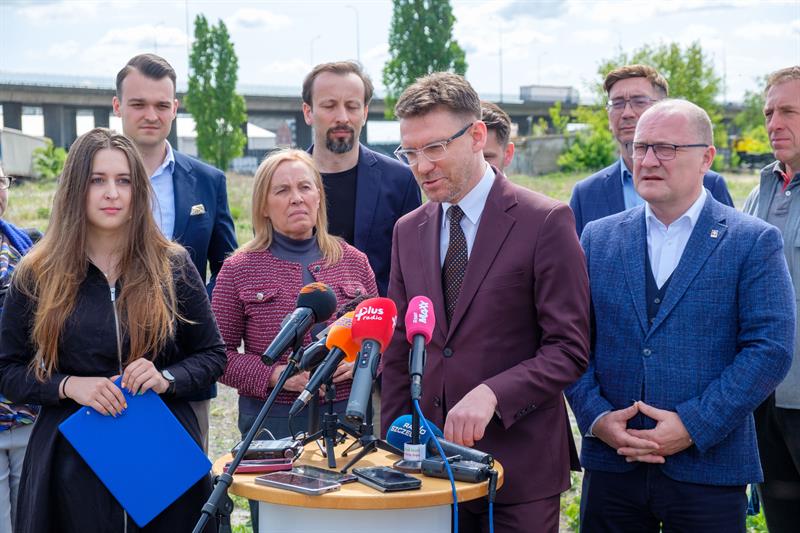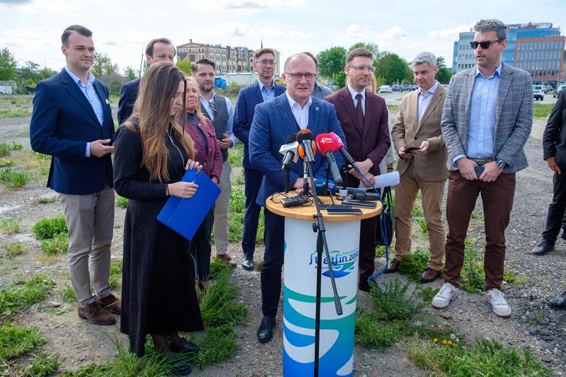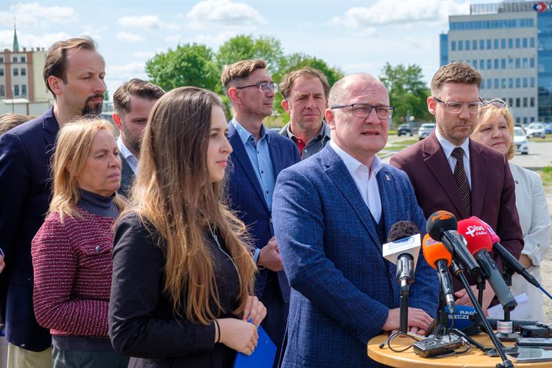 Budynek powstanie na działce znajdującej się naprzeciwko "Ładogi", obok Trasy Zamkowej. I to tam konferencję prasową poświęconą inwestycji zorganizował Piotr Krzystek. Towarzyszyli mu radni z jego klubu OK Polska oraz wielu radnych z mającego większość w Radzie Miasta klubu Koalicji Obywatelskiej - już tylko z obecności tak wielu samorządowców można było wywnioskować, że prezydent ma nam do zakomunikowania coś ważnego.