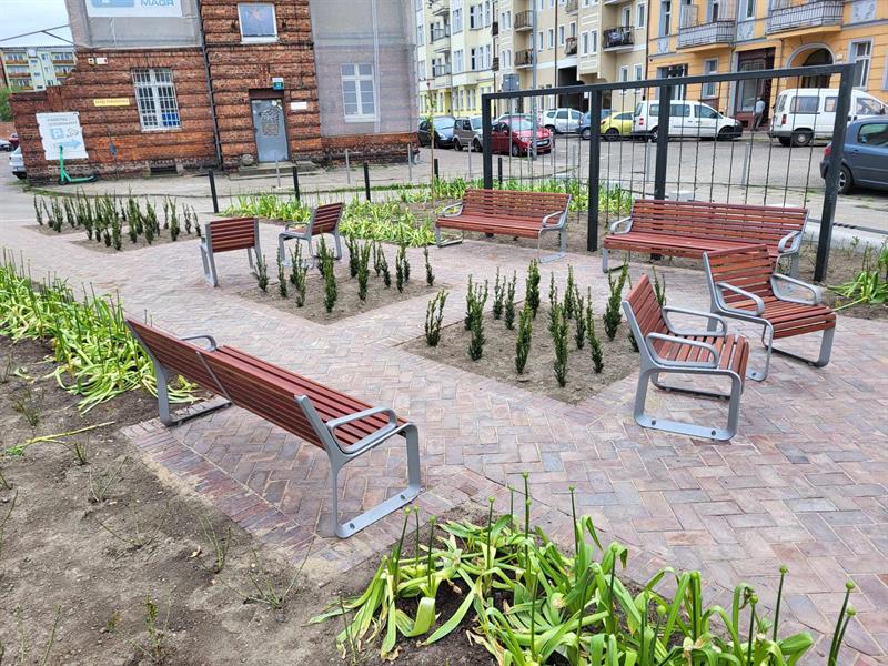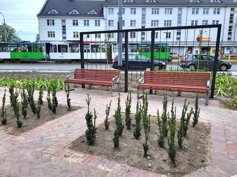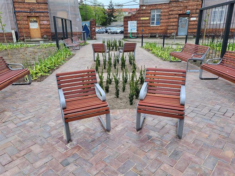 Można tu przysiąść, zatrzymać w biegu. I choć nie da się tu uciec od zgiełku pobliskich ulic, to przynajmniej na chwilę odpocząć wśród zieleni. Taki był cel właśnie dokonanej przemiany skrawka zaniedbanej miejskiej działki, u zbiegu al. Bohaterów Warszawy oraz ul. Żółkiewskiego.