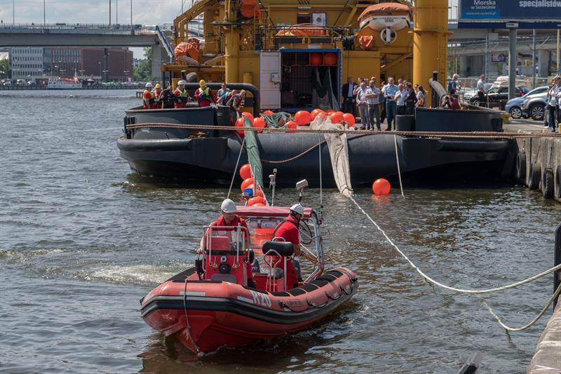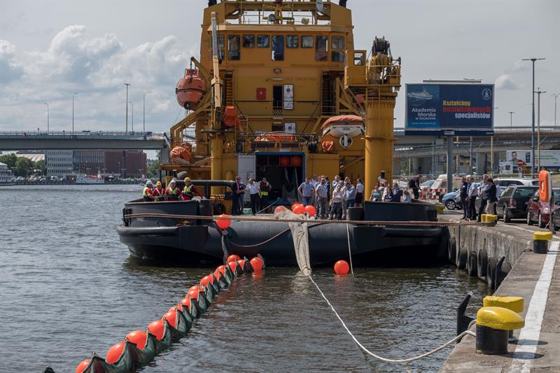 Pokaz techniczny możliwości nowatorskiej zapory olejowej odbył się w czwartek (28 czerwca) w Szczecinie na Odrze. Był częścią warsztatów poświęconych problematyce zwalczania rozlewów olejowych z zastosowaniem technologii przyjaznych środowisku.