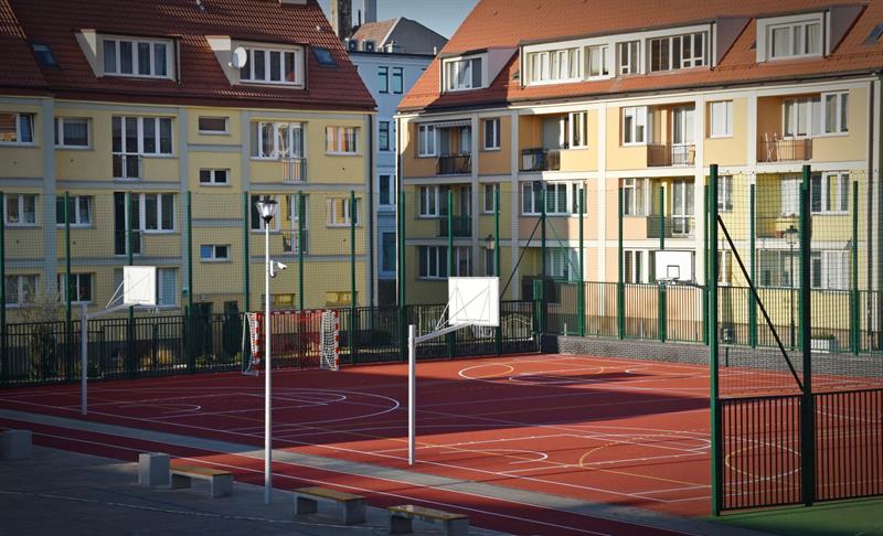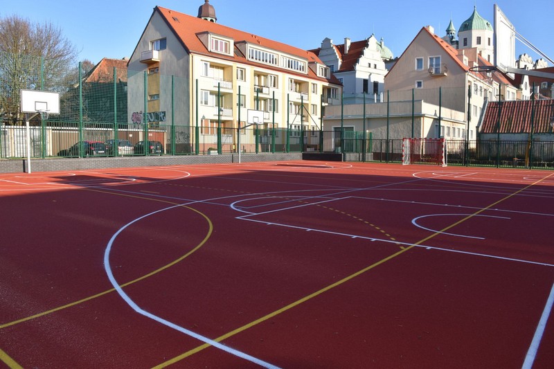 Dzieci ze Szkoły Podstawowej nr 63 przy ul. Grodzkiej w Szczecinie mogą już korzystać z nowego wielofunkcyjnego boiska sportowego do piłki ręcznej, koszykówki i siatkówki. Ma ono wymiary 24 m x 35 m i nawierzchnię poliuretanową z piłkochwytami. Obok boiska znajduje się 50-metrowa, dwutorowa bieżnia z zeskocznią do skoku w dal oraz siłownia zewnętrzna i ścieżka zdrowia. Ustawione zostały elementy małej architektury (kosze na śmieci, ławki). W ramach prac wykonane zostało odwodnienie i kanalizacja deszczowa, przebudowane zostały także sieci elektryczne oraz zainstalowano nowe oświetlenie i monitoring.