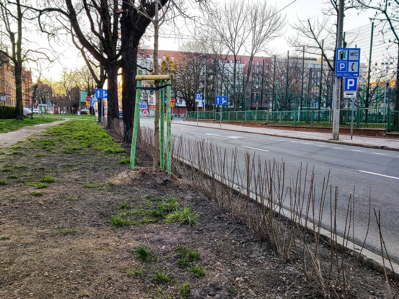Na zaniedbanym pasie zieleni, rozdzielającym jezdnie ul. Narutowicza, pojawiły się nowe drzewa i krzewy. Miasto zainwestowało ponad 46 tysięcy złotych w uszczelnienie i urozmaicenie obrzeży nieformalnego wybiegu dla psów, jaki funkcjonuje w tym miejscu od dziesięcioleci.