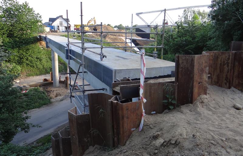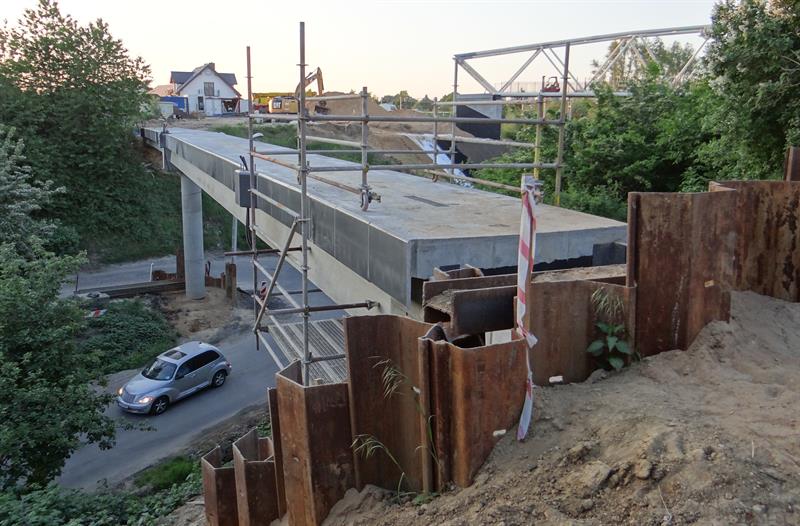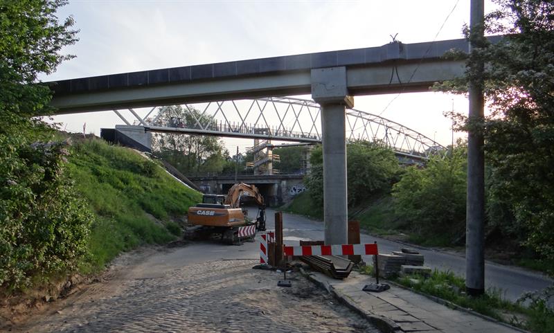 Konstrukcja nośna nowej kładki została już zmontowana. Trwają wciąż roboty przy obu jej przyczółkach od skarp przy ul. Budziszyńskiej i ul. Krzewinkowej. Wybudowana została również nowa podbudowa drugiej kładki, krótszej, która połączy starą część Wstowa od strony ulic Ustowskiej i Zagonowej z rejonem nowej zabudowy na wzniesieniach po przeciwnej stronie przy takich ulicach, jak: Krzewinkowa, Darniowa, Wysoka czy Stroma i Iglasta. Ta przerzucona została nad biegnącymi poniżej ulicami Wysoką i Przy Ogrodach. Tam też na wykonanie czekają wciąż dojścia na przyczółkach.