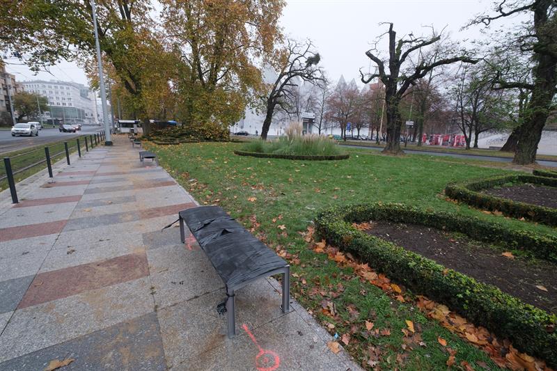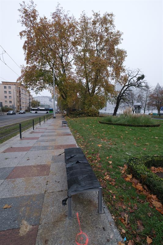 Brak oparcia jest prawidłowy, bezdomnym wygodniej się śpi na szerokiej ławce bez oparcia