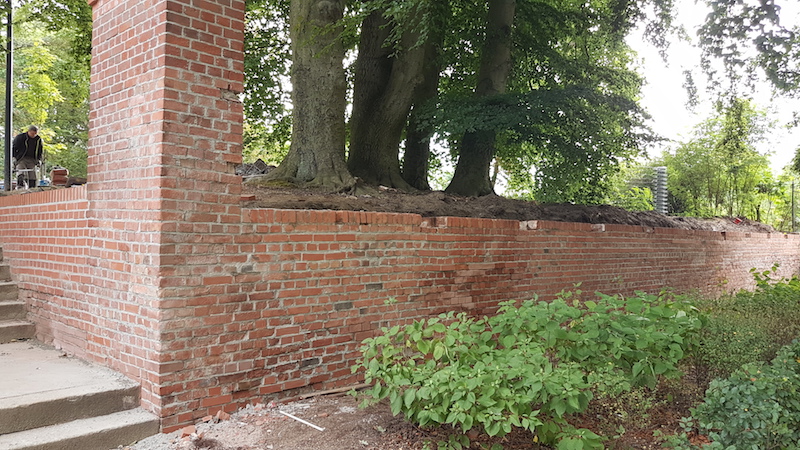 Zadaniem wykonawców trzeciego etapu są prace polegające na odtworzeniu filarów przy schodach ceglanych oraz uzupełnieniu ubytków w ceglanym murze oporowym położonym przy ulicy Niemierzyńskiej. Na murze zamontowane będą nowe panele ogrodzeniowe. Betonowe schody zostaną rozebrane oraz ponownie ułożone. Wcześniej renowacji poddane zostało ogrodzenie Gimnazjum nr 6 – od strony parku.
