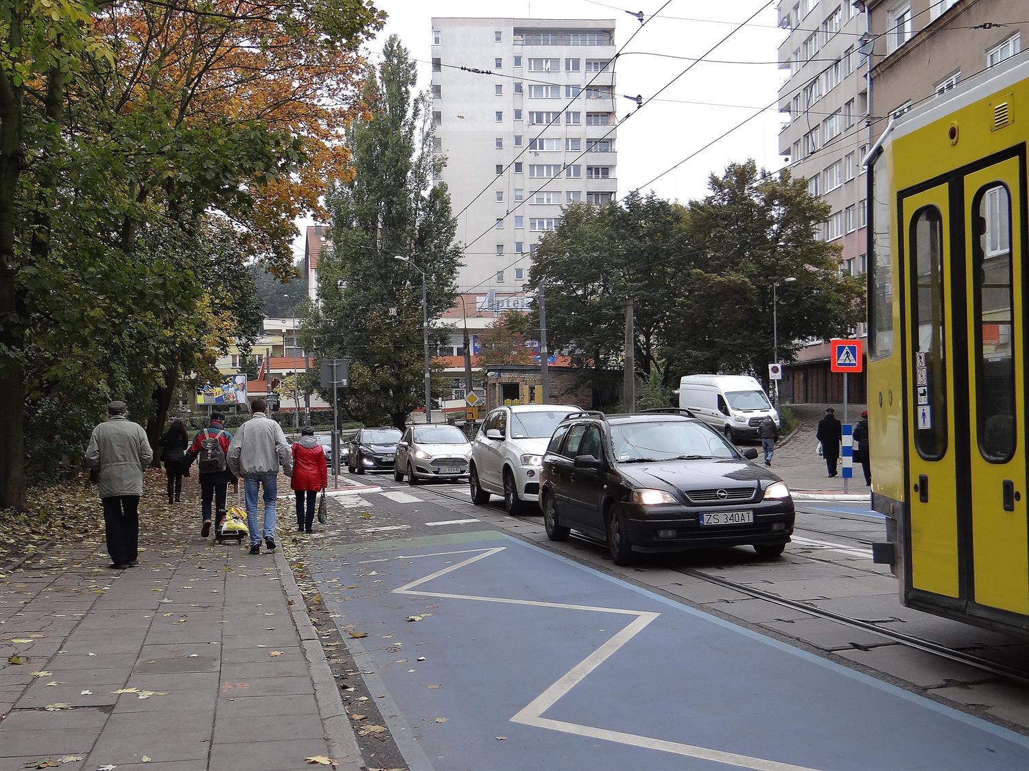 jaki specjalista takie rozwiązanie. Ostatnio tamtędy jechałem, a mieszkam w innej części Szczecina, to mi włosy dęba stanęły z wrażenia jak zobaczyłem te zmiany. Główny kierunek ruchu w prawo, a pas zanika i na tory wypycha. Brawo, brawo, po trzykroć brawo!