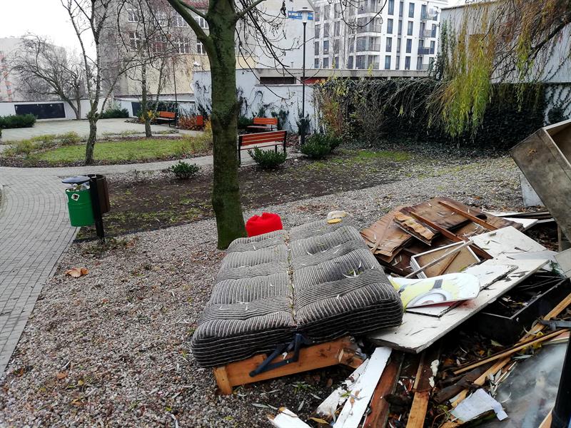 Przecież to jest normalne miejsce na tzw. gabaryty które wywozi miasto za darmo co 2-3 tygodnie- każda wspólnota itd. ma terminarz. bo co maja z tym zrobic, mogli by we własnym zakresie wywieźć ale to kosztuje a złomiarze tego nie biorą. Lepiej dziury w chodnikach i jezdi sledzic niz takie cos ,strata czasu czytelników. www.alertszczecin.pl tam sie zgłasza wszelakie problemy miejskie ,działać ,nie narzekać bo od narzekania nic się nie poprawia wręcz przeciwnie.