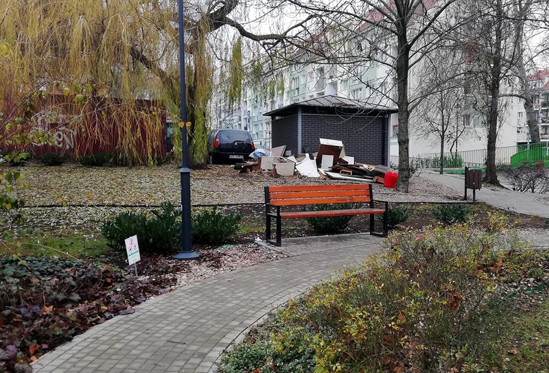 To jedno z niewielu zrewitalizowanych podwórek Starego Miasta - położone na tyłach ul. Wyszyńskiego oraz Staromiejskiej, a na trasie pomiędzy placami: Tobruckim oraz Orła Białego. Niemałym nakładem sił oraz środków dostosowane do potrzeb rekreacyjnych okolicznych mieszkańców pośród efektownie skomponowanej zieleni. Jak widać na zdjęciu - niestety - złych nawyków nie da się zmienić równie skutecznie jak miejskiej przestrzeni.