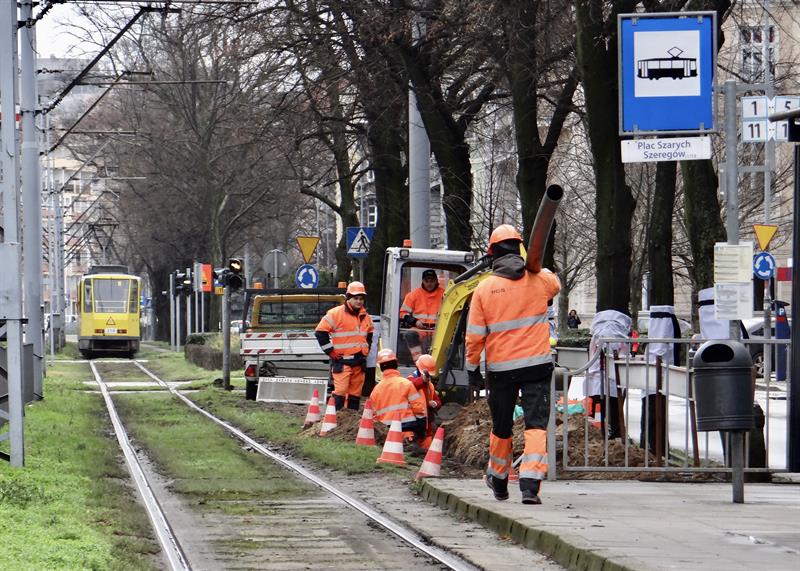 Z każdym dniem zmienia się krajobraz w obrębie wyspy centralnej w rejonie szczecińskiego pl. Szarych Szeregów, gdzie od połowy stycznia br. trwa przebudowa torowiska dla tramwajów. Spółka ZUE z Krakowa, wykonawca inwestycji, nie zwalnia tempa, wykorzystując na prace do maksimum sprzyjającą tej zimy aurę.
