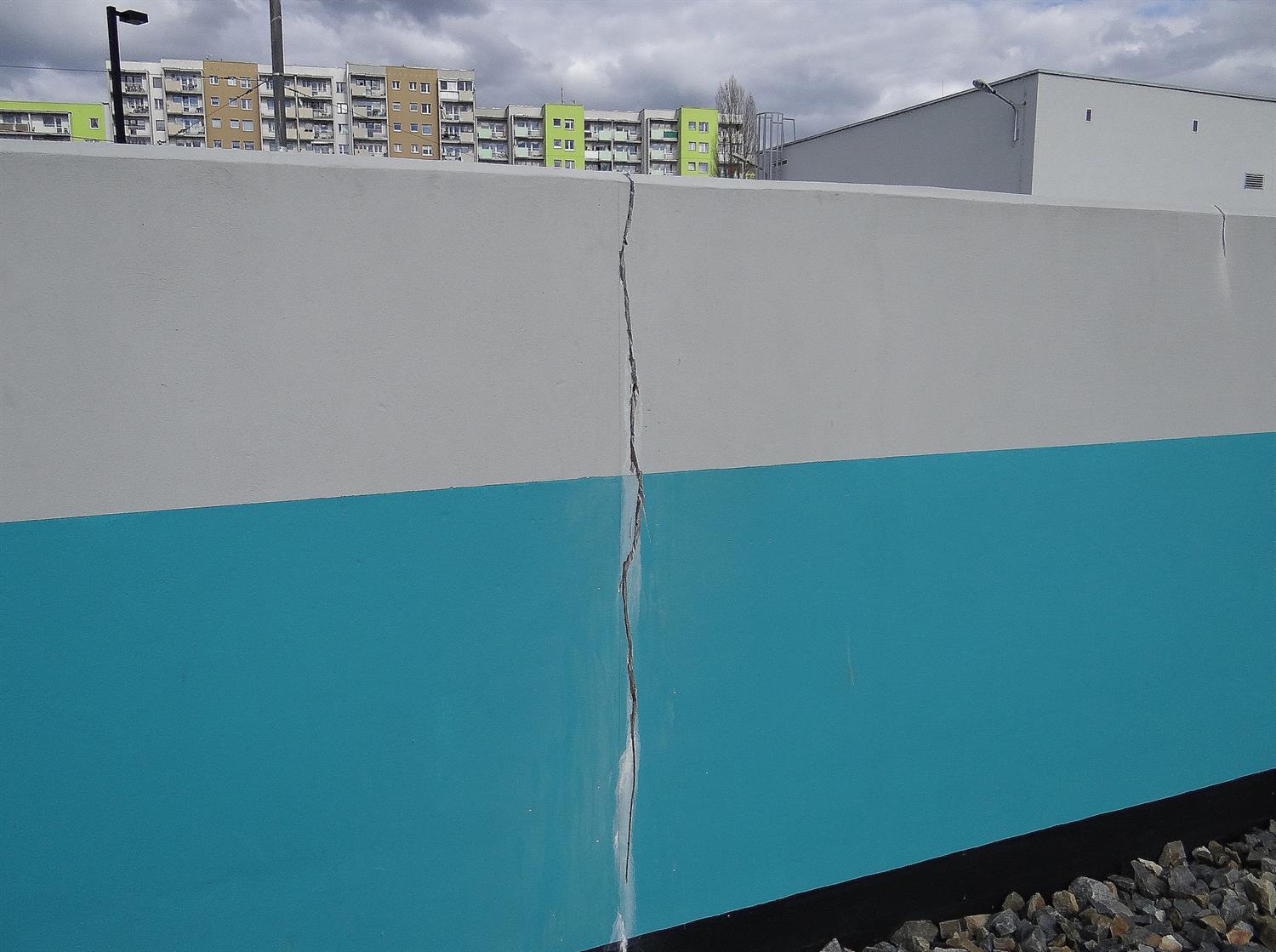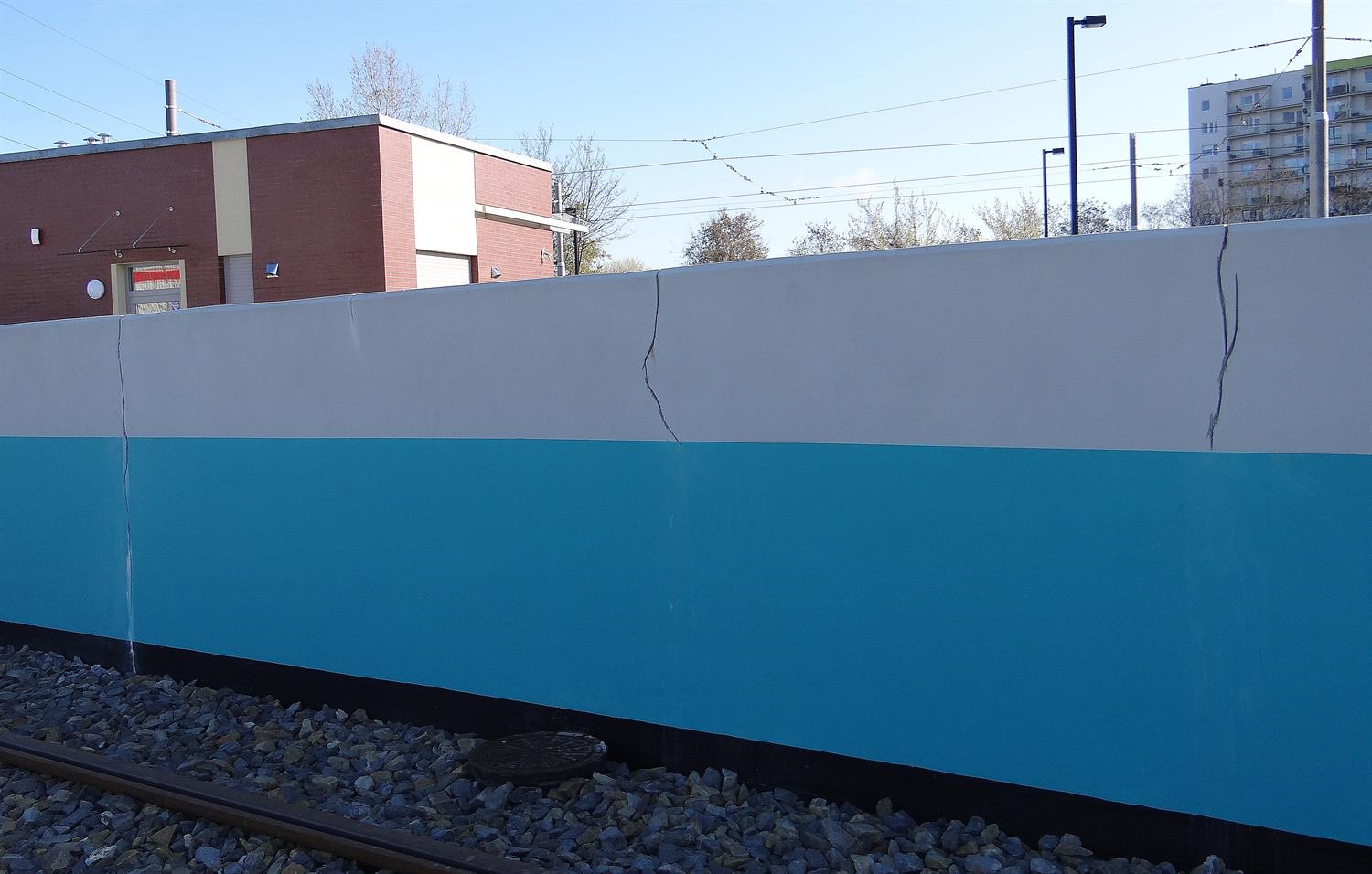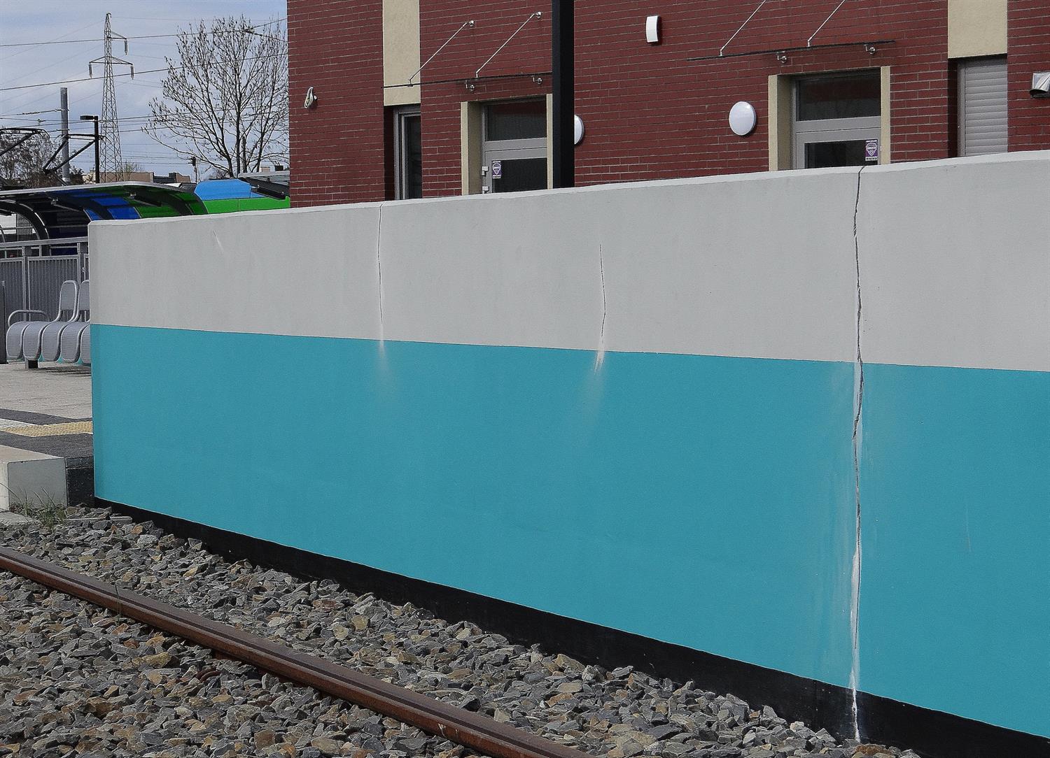 Kolejne rysy na trasie tzw. szybkiego tramwaju, tym razem na jego końcowej stacji. Po pękających minionej zimy spawach i naprawach, pojawiły się liczne spękania na murach przy torze do zawracania i przejścia podziemnego przy schodach, wzdłuż zjazdu wózkami lub rowerami na pętli Turkusowa. Choć nie minął rok od oddania inwestycji do użytku.