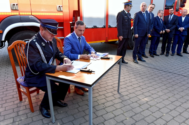 – Dzisiejsza uroczystość to dla mnie powód do olbrzymiej radości i satysfakcji. Nie tylko z racji funkcji, którą przyszło mi dziś pełnić, ale przede wszystkim, jako mieszkańca Pomorza Zachodniego, jako człowieka który na tej ziemi żyje, wypoczywa, bywa we wszystkich tych powiatach, które dziś zostały wyposażone w ten nowoczesny sprzęt. – powiedział szef MSWiA Joachim Brudziński po podpisaniu umów. – Nie oglądamy się spod jakich barw partyjnych, spod jakich komitetów wyborczych wywodzą się samorządowcy, którzy również zakup tych dobrze wyposażonych wozów i łodzi wsparli, bo bezpieczeństwo nie ma barw partyjnych. Chciałbym tutaj bardzo serdecznie podziękować, bo gdyby nie wsparcie burmistrzów, starostów to byłoby trudniej o ten sprzęt, a on ma służyć wszystkim mieszkańcom Pomorza Zachodniego.