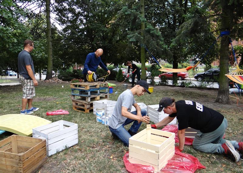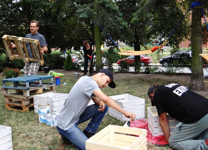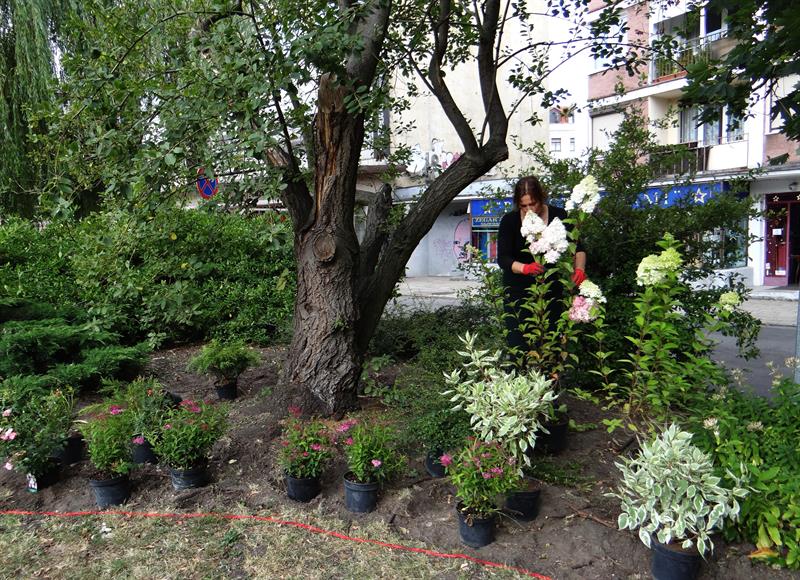 Budowa ogrodu sąsiedzkiego trwa niespełna tydzień. Z entuzjazmem społecznych ogrodników, dzięki któremu aranżacja terenu postępuje w błyskawicznym tempie. Po pracach porządkowych, rozkopaniu skarp od strony ul. Grodzkiej i budynku z kultową placówką "Pod Gwiazdami", nadszedł czas sadzenia roślin oraz konstruowania mebli ogrodowych.