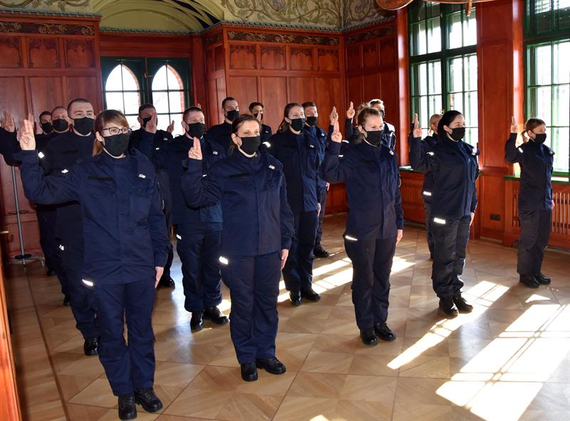 Dziewiętnastu funkcjonariuszy zasiliło szeregi zachodniopomorskiej policji. Nowi policjanci wypowiedzieli słowa Roty składając uroczyste ślubowanie. W wydarzeniu uczestniczyli m.in. wojewoda Zbigniew Bogucki oraz szef zachodniopomorskiego garnizonu nadinsp. Tomasz Trawiński, którzy pogratulowali nowym policjantom wyboru drogi życiowej.