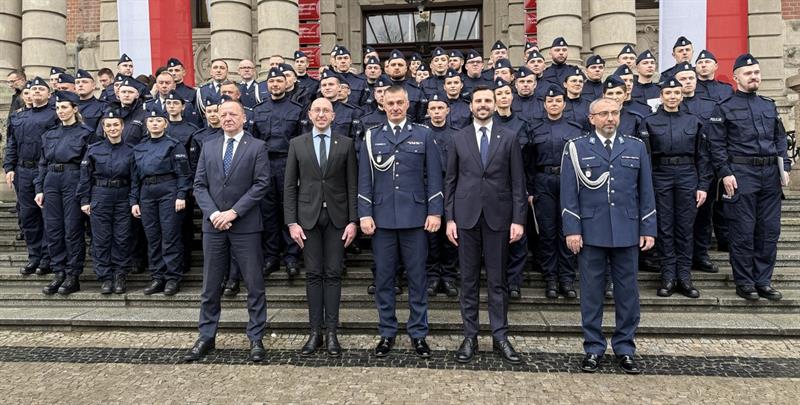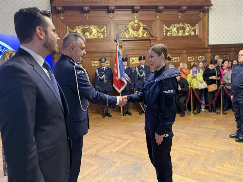 Nowo przyjętych policjantów powitał w szeregach formacji Komendant Wojewódzki Policji w Szczecinie inspektor Szymon Sędzik. Przypomniał o ogromnej odpowiedzialności, jaka ciąży na policjantach, którzy niejednokrotnie muszą w ułamkach sekund podejmować trudne decyzje wpływające na życie ludzkie.