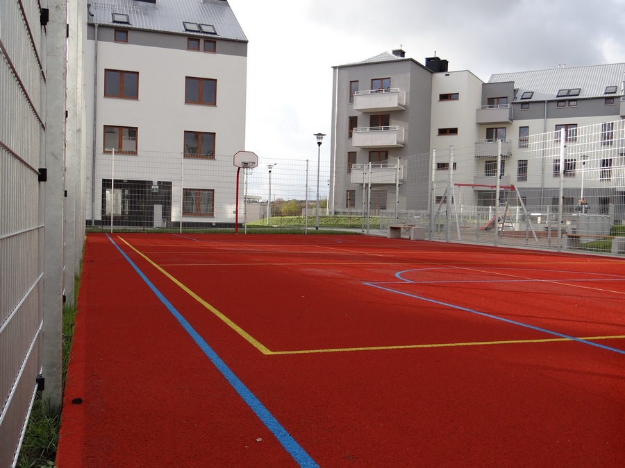 W budynkach powstało łącznie 267 mieszkań, 4 garaże wbudowane w budynki, urządzone zostały parkingi i drogi dojazdowe. Znalazło się również miejsce na filię żłobka dla 30 maluchów. Wokół nich urządzone zostały boisko sportowe ze sztuczną nawierzchnią, place zabaw dla dzieci, w tym placyk z fontanną, całość otacza zieleń. Osiedle zaprojektowało szczecińskie Biuro Projektowe FBA s.c., generalnym wykonawcą była spółka EBUD-Przemysłówkaz Bydgoszczy, a nadzór inwestycyjny sprawowała Komplet Inwest s.j., z Gorzowa Wielkopolskiego.