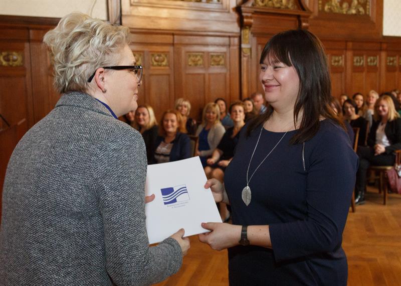 Uroczystość odbyła się w Sali Rycerskiej Zachodniopomorskiego Urzędu Wojewódzkiego. Akty nadania stopnia awansu zawodowego nauczyciela dyplomowanego wręczyła pedagogom Magdalena Zarębska-Kulesza, zachodniopomorski kurator oświaty.